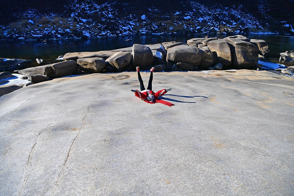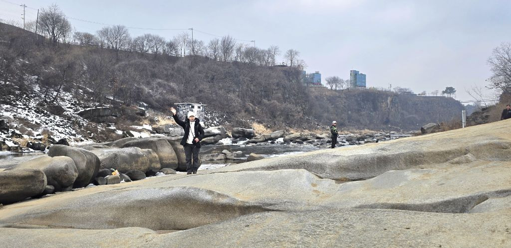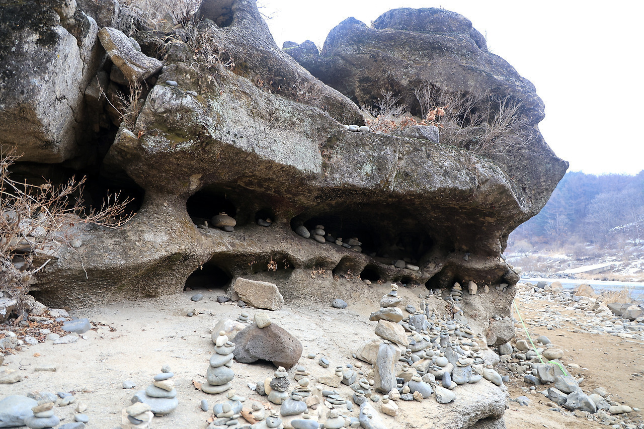 오랜 세월동안 강물에 의해 다듬어진 평평한 바위들이 이색적이다.