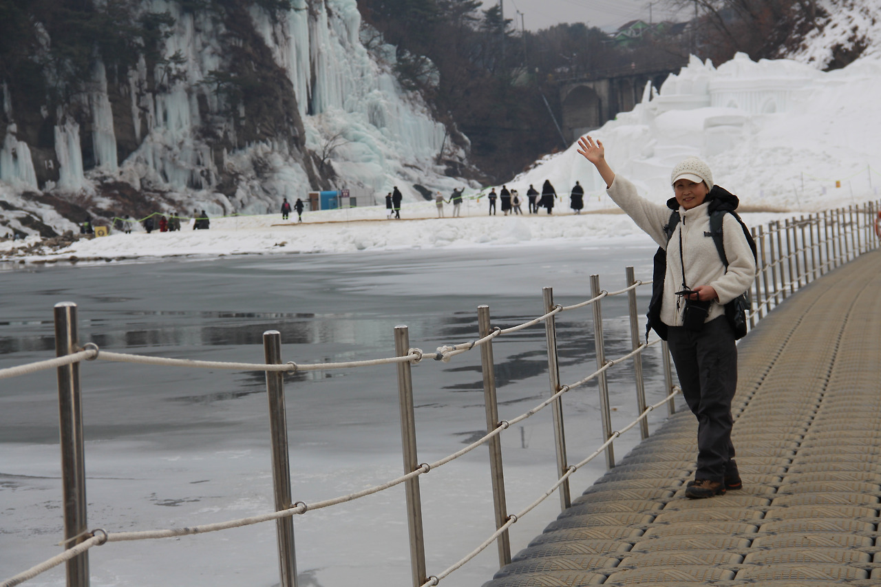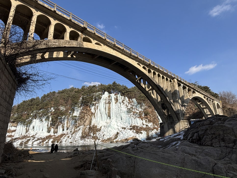 승일교와 얼음 폭포가 아주 잘 어울러졌다.