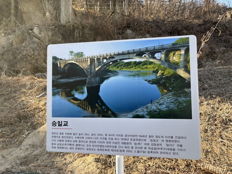 건설하여 1958년 준공한 다리이다. 그래서 승일교는 이승만의 '승'과 김일성의 '일'을 따서 .승일교'라고 명명했다고 한다
