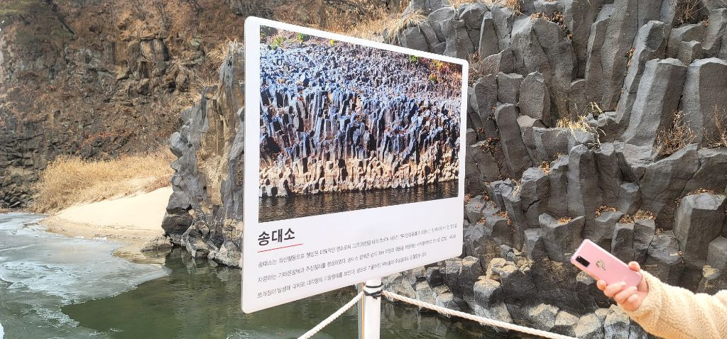 송대소 절벽은 높이가 30m 가 넘는 수직절벽으로, 뜨거운 용암이 식으며 쪼개짐이 발생하여