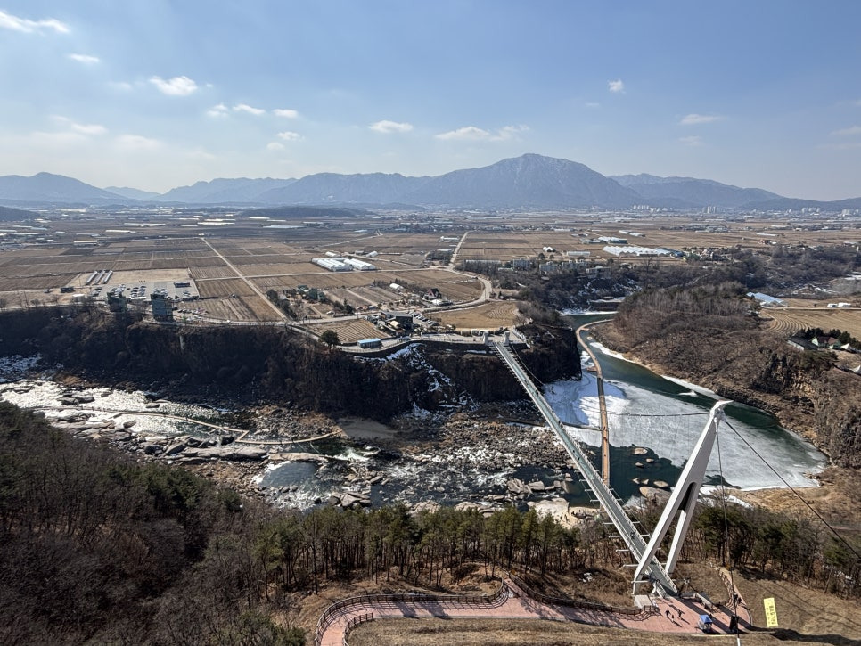 송대소를 지날무릅 멀리 햇불전망대와 은하수교가 보인다
