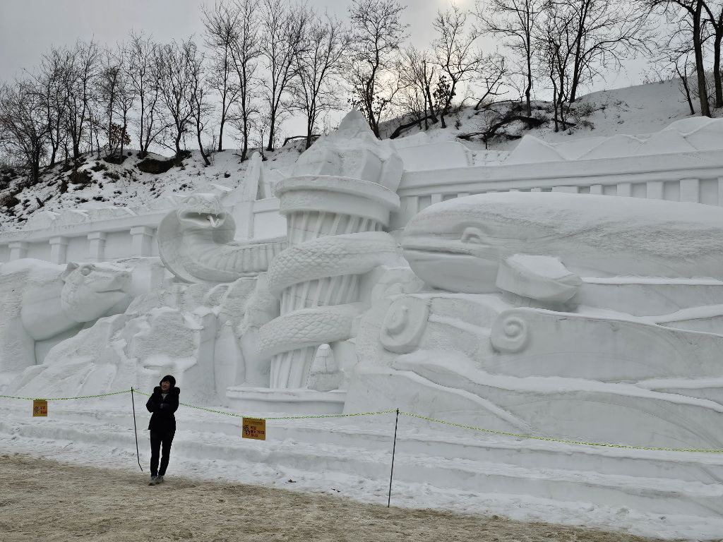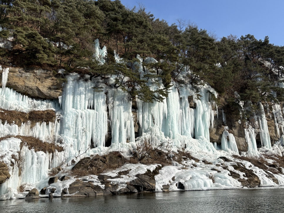 인공폭포로 알고 있는데 추위에 폭포가 다 얼어 버렸다. 얼어 버린 그 모습이 오히려 장관이다.