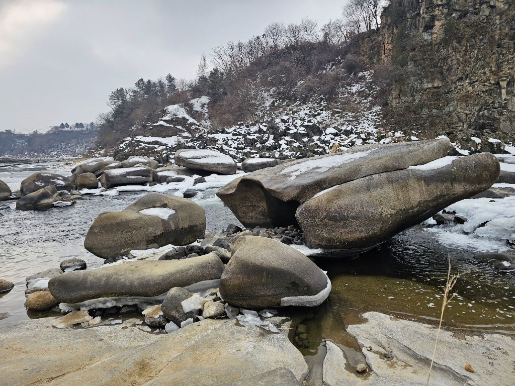 매서운 겨울 추위 속에서 바라보는 한탄강 주상절리의 풍광과 현무암 협곡에 핀 겨울 눈꽃은 걷는