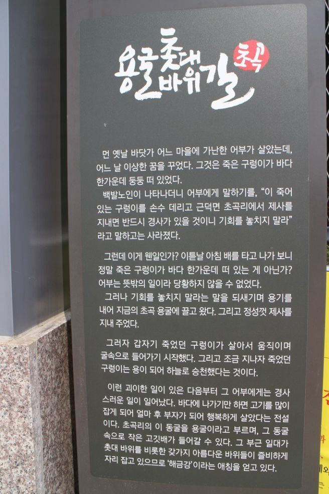 초곡용굴 촛대바위 길에 얽힌 설화도 자세하게 설명되어 있다.
