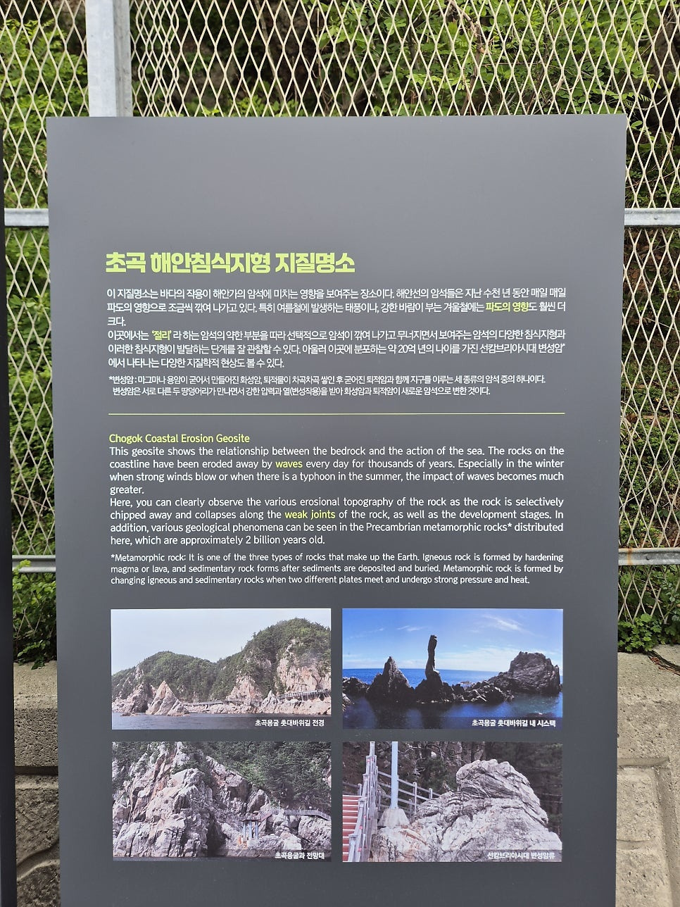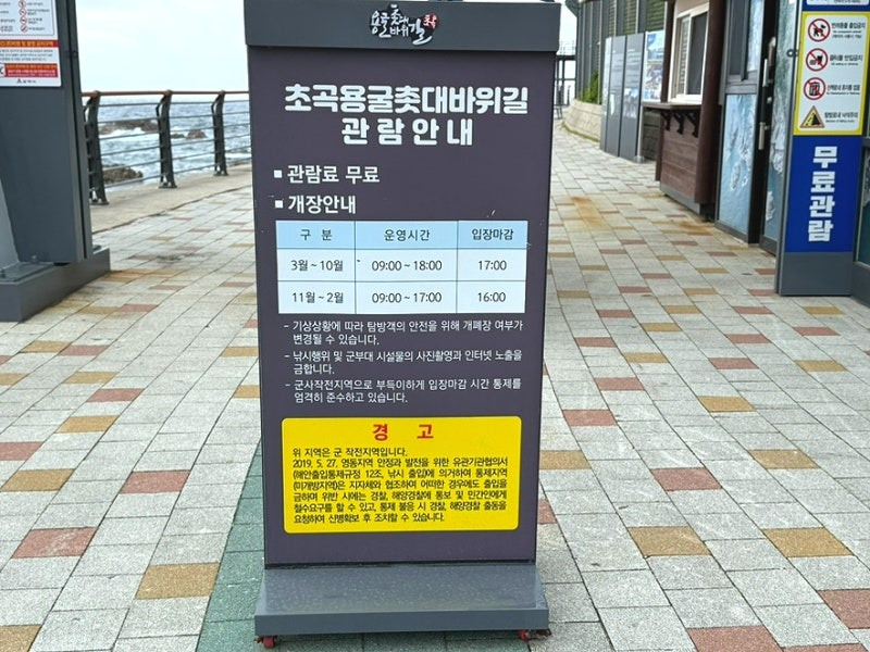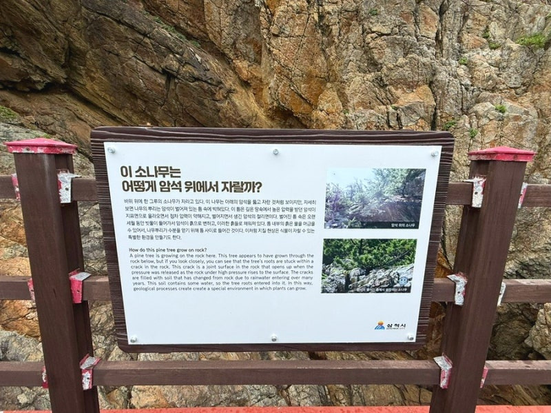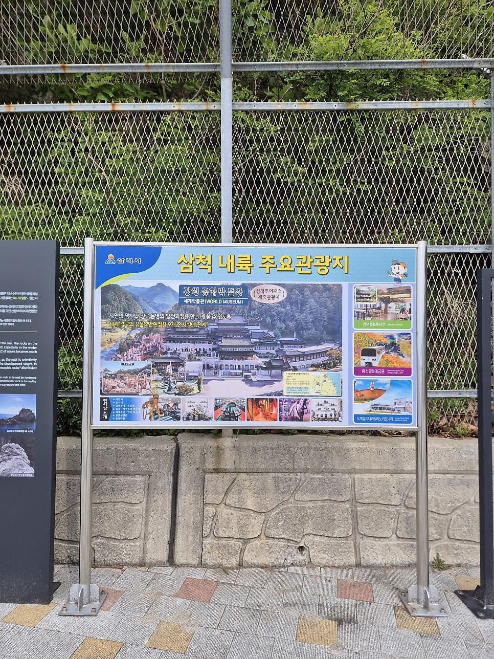 입구에는 삼척주요관광지 안내도 초곡 해안침식지형 지질 명소 설명과