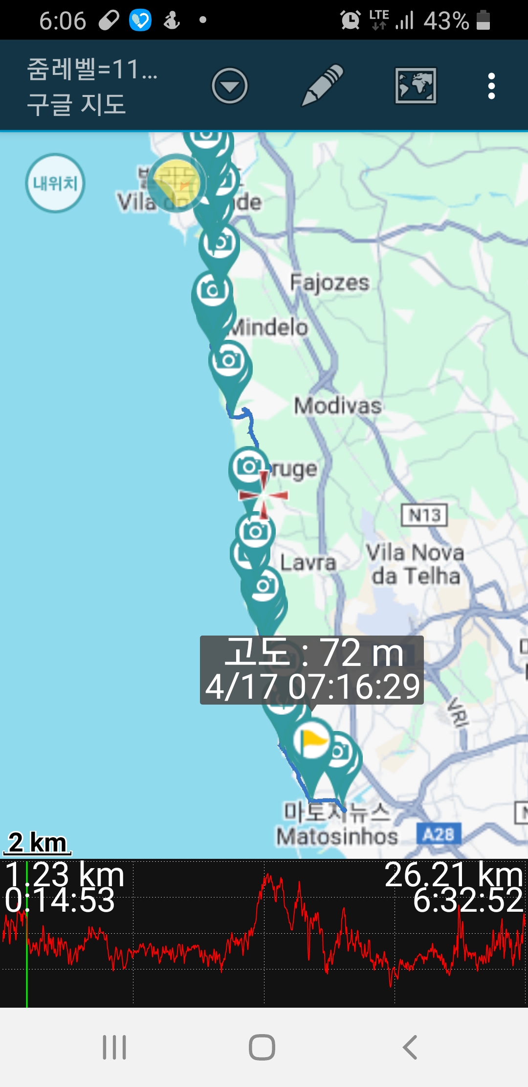 구간 : 포르투~빌라두콘드 26.2km (10시간)