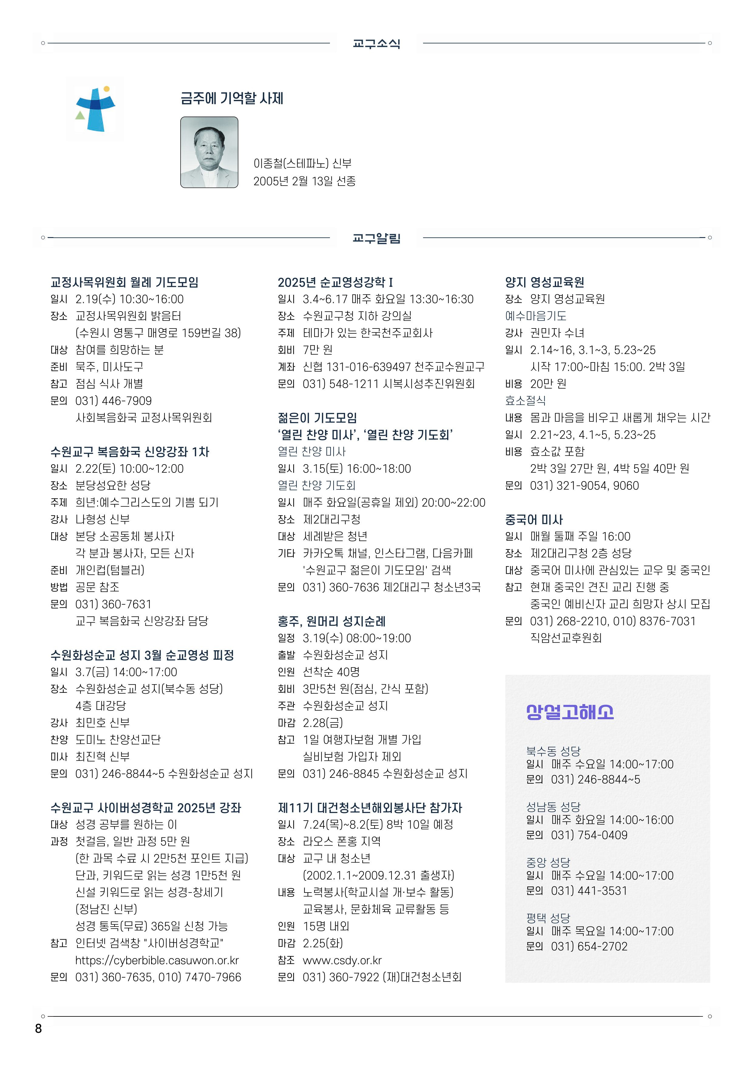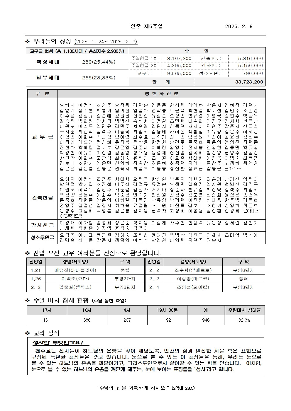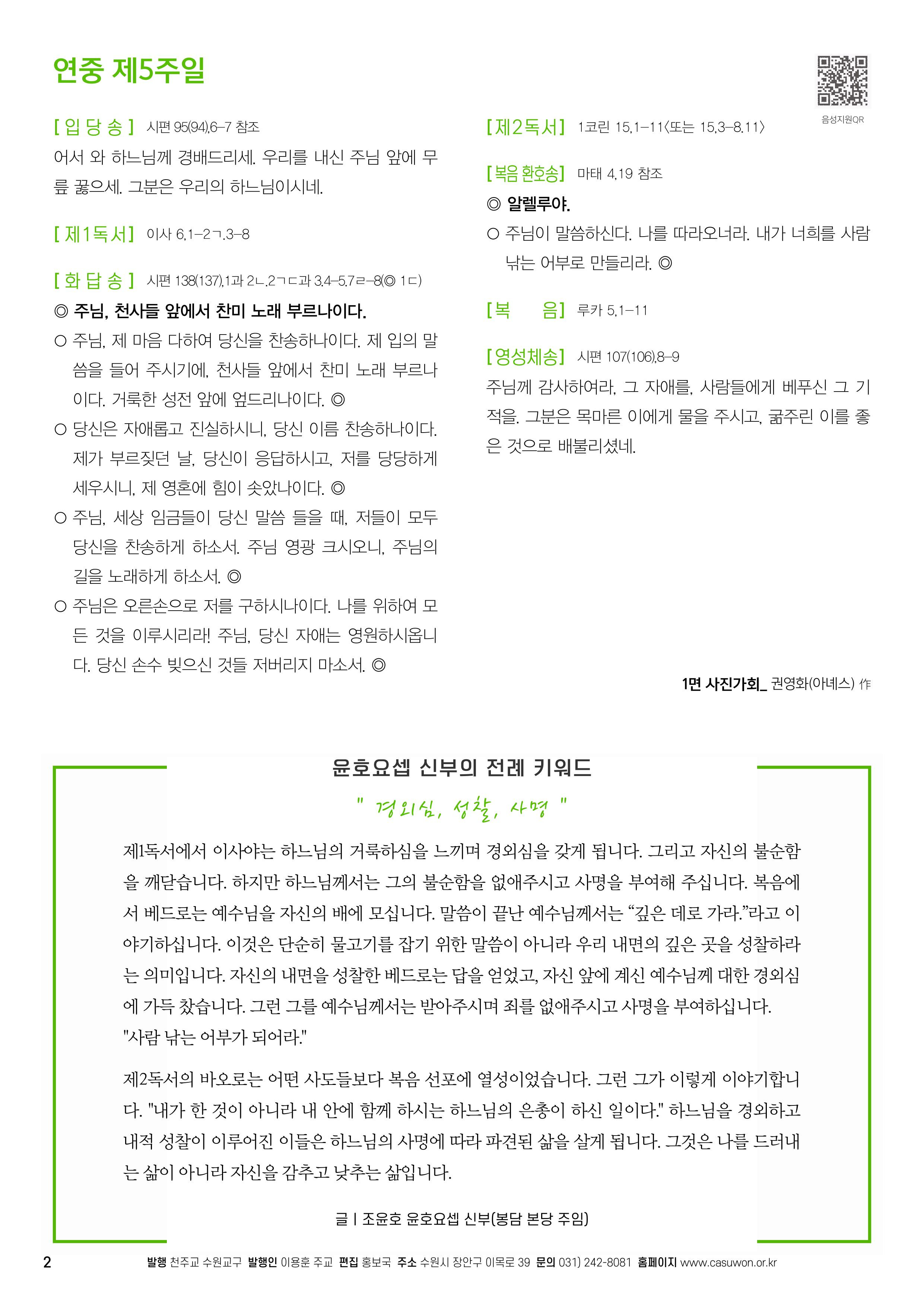 2/9 연중 제5주일 주보 작성자동탄송동성당|작성시간25.02.08|조회수390 목록 댓글 0 글자크기 작게가 글자크기 크게가 [ 출처 : 천주교 수원교구 ] 다음검색 현재 게시글 추가 기능 열기 북마크 공유하기 신고 센터로 신고 댓글 댓글 0 댓글쓰기 답글쓰기 댓글 리스트