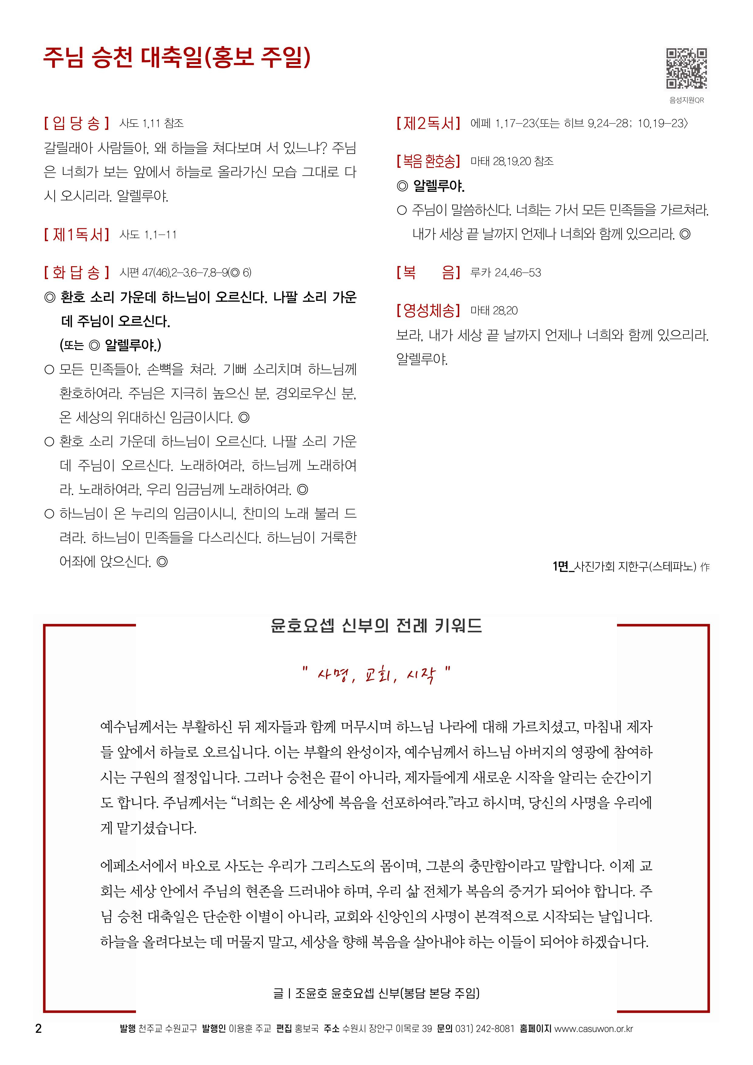 6/1 주님 승천 대축일 주보 작성자동탄송동성당|작성시간25.06.01|조회수265 목록 댓글 0 글자크기 작게가 글자크기 크게가 [ 출처 : 천주교 수원교구 ] 다음검색 현재 게시글 추가 기능 열기 북마크 공유하기 신고 센터로 신고 댓글 댓글 0 댓글쓰기 답글쓰기 댓글 리스트
