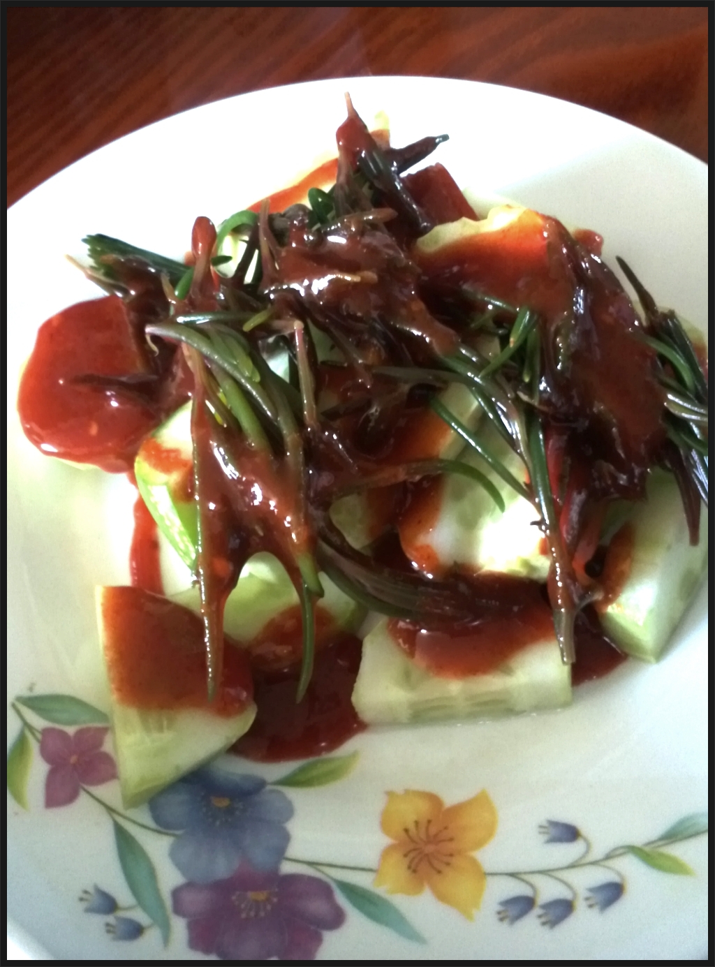 -초장에 함초와 나문재 오이 양파 드을 곁들인 일종의 초무침이다. 새콤짜콤 입맛을 돋운다.
