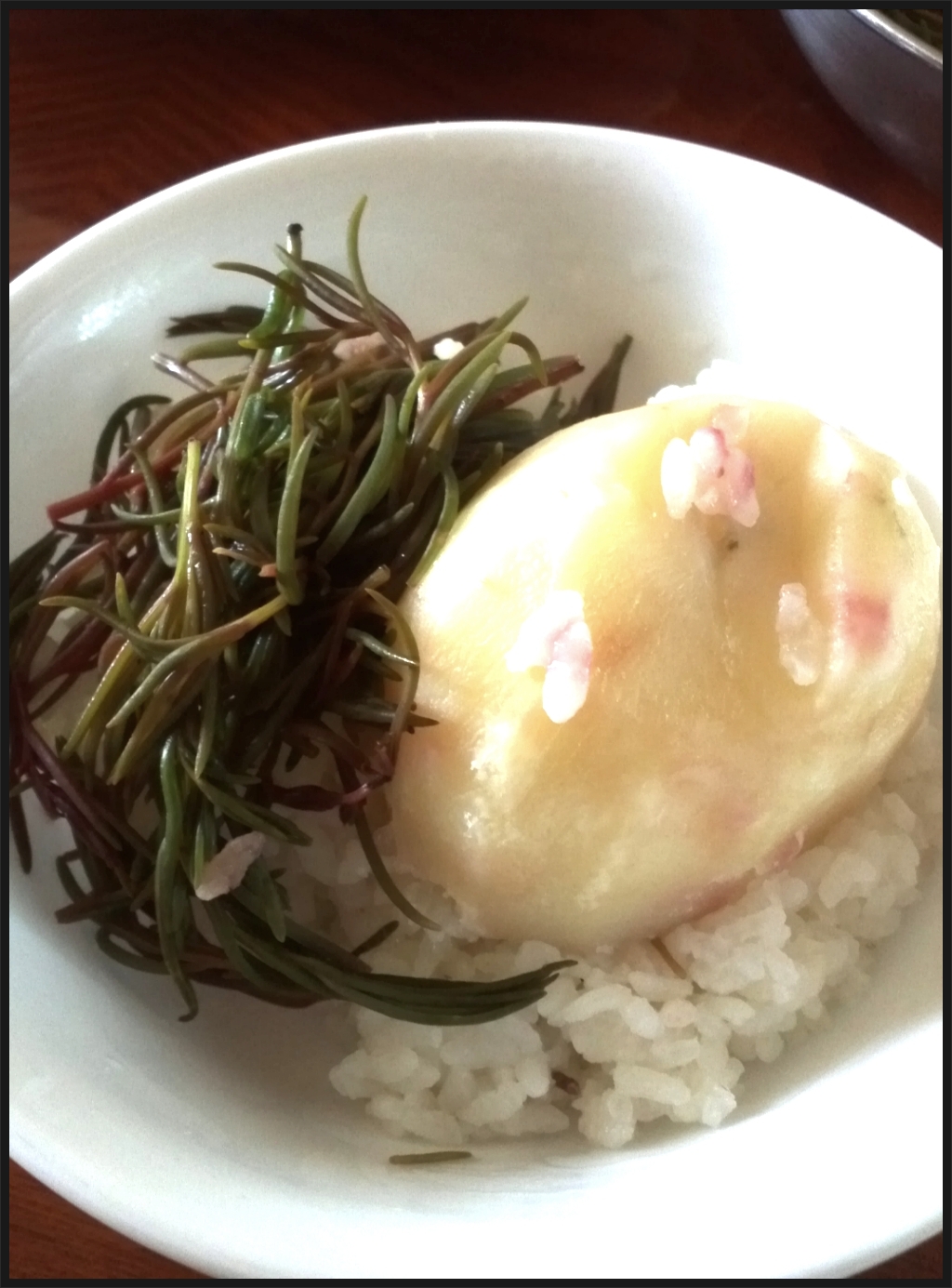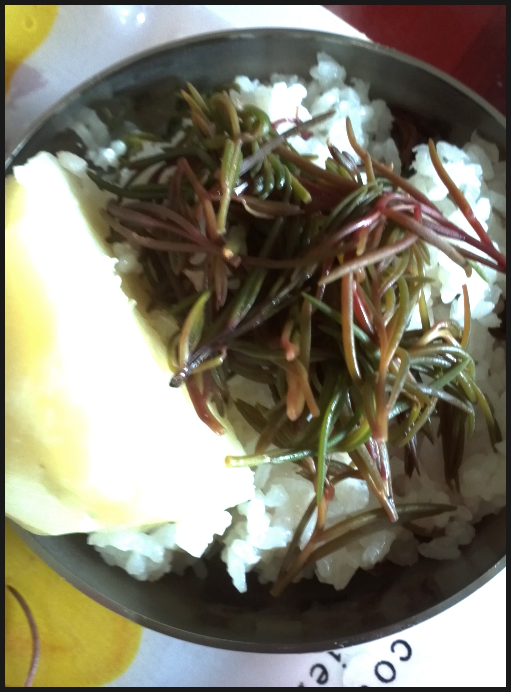 -나문재를 밥지어 끓어 오를때 밥솥에 넣고 뜸들이며 익힌다.