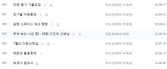 선배님께서 남긴 동창회 카페에 남긴 수많은 사진들을 살펴보면