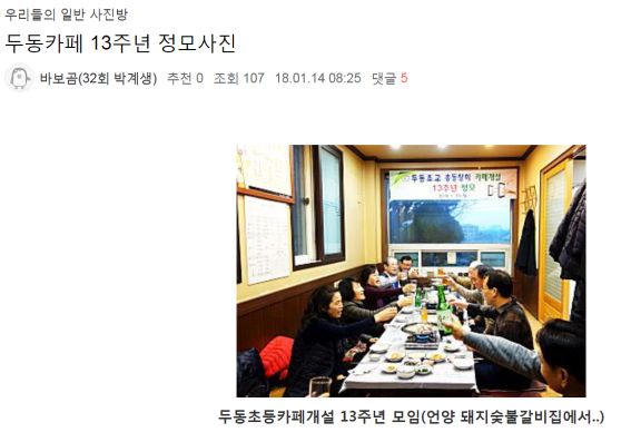 특히 두동초등학교 동창회 카페에...