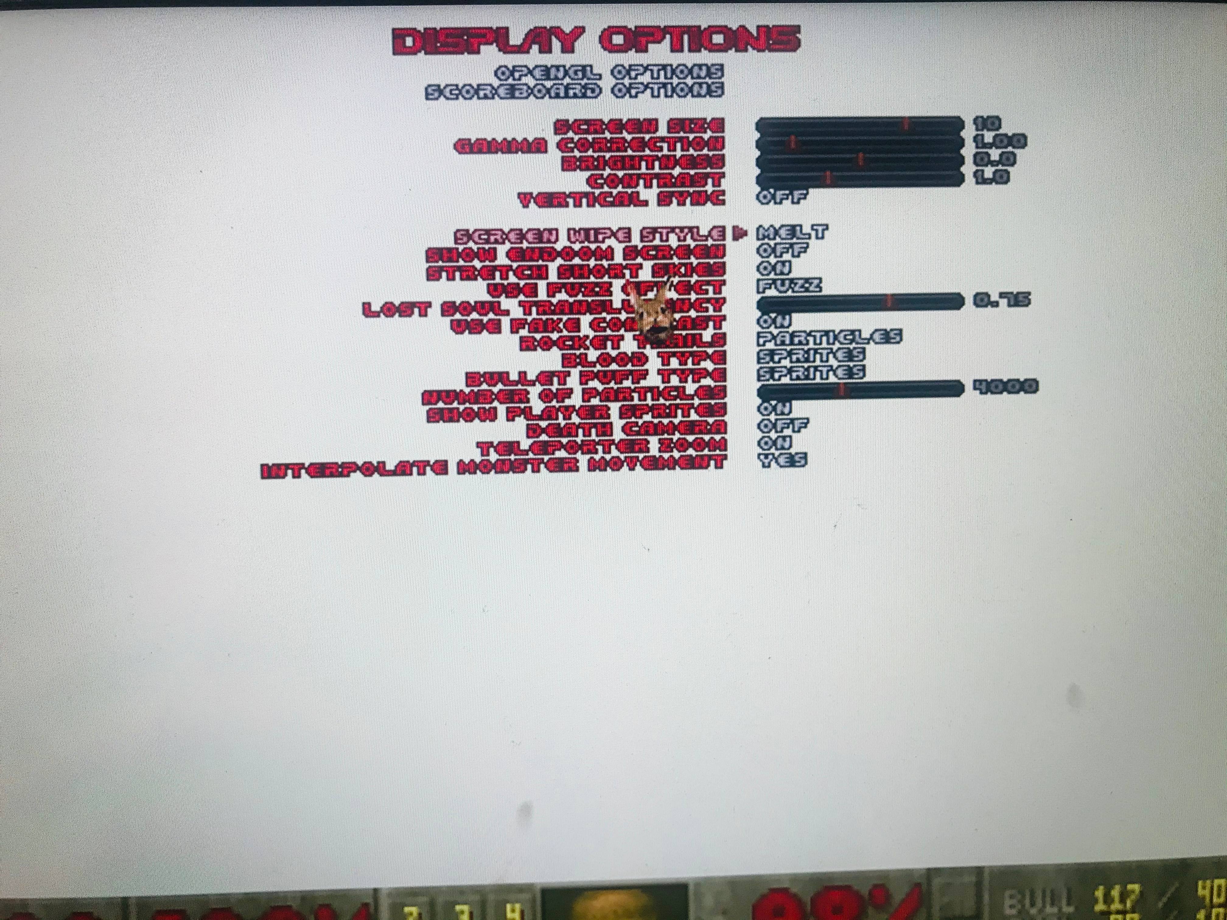 둠 리부트/이터널까지 나왔지만 해외에서 업무용 노트북만 사용하다 보니 아직 할 수가 없어서 클래식 둠 부터 정주행 중인데요.. 무적 아이템을 먹으면 화면이 너무 하얗게 변해서 제 총도 안보이고 그냥 앞이 하나도 안보여서 게임 진행이 안되네요.. 원래 하얗게 변하는 건 알고 있는데 앞이 안보일 정도여서 그래픽 설정도 디폴트 설정으로 바꿨는데도 계속 하얗네요.. 해결방법 아시는 분 있나요? 윈도우 10이고 gzdoom 사용중입니다. 스샷 첨부합니다.