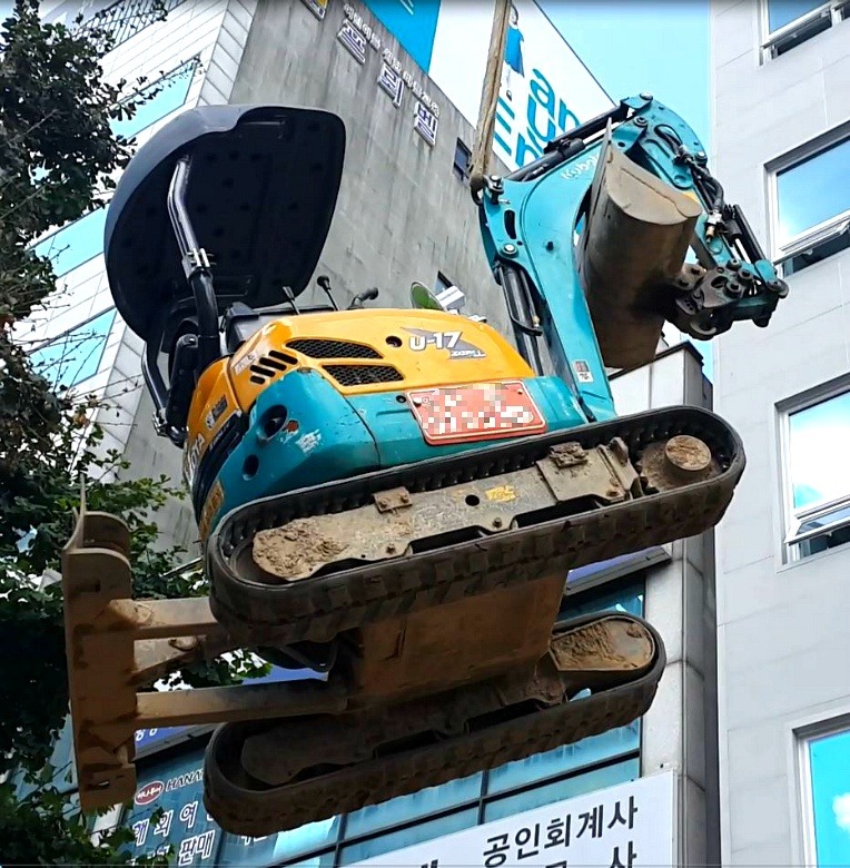 하늘을 날아다니는 미니굴삭기입니다