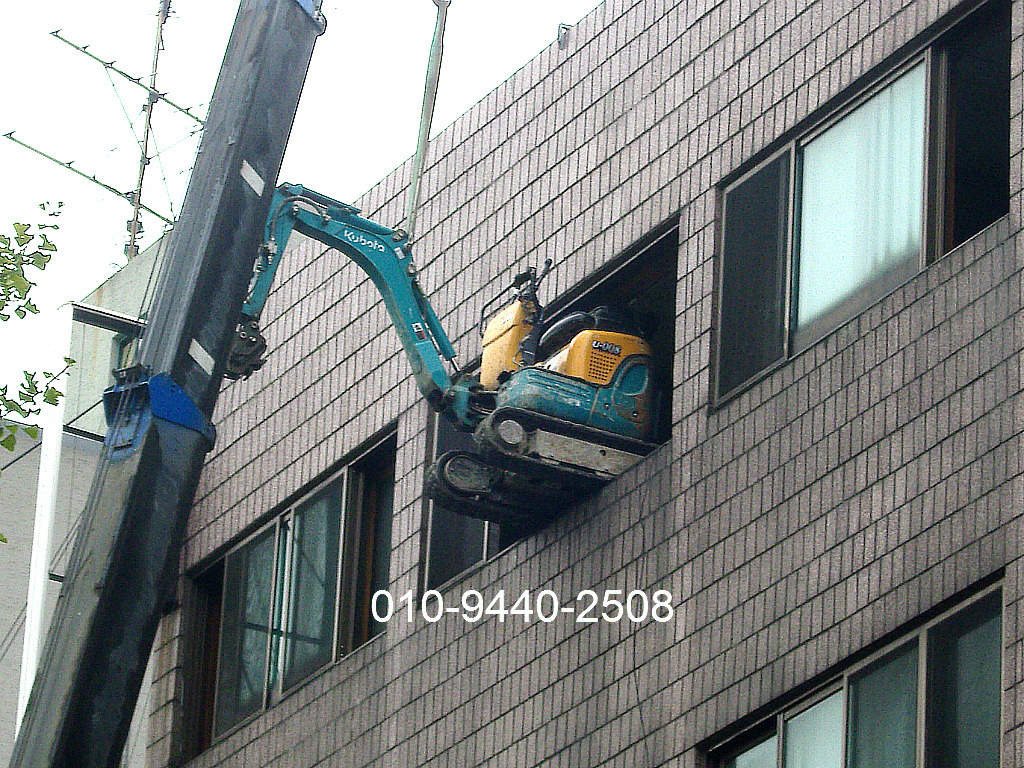 008미니포크레인 5층창문으로 진입 (창문높이가 1.4미터) 합니다.