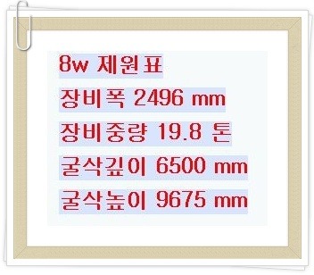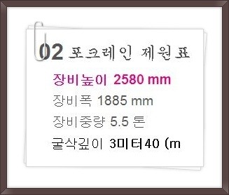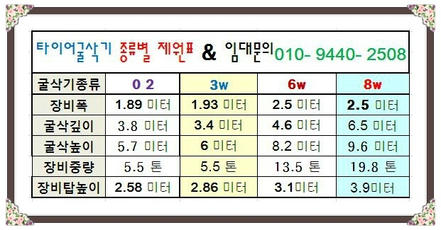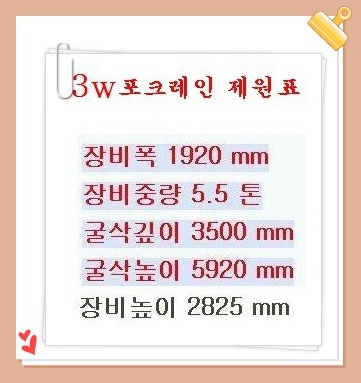 3w포크레인 제원표 & 천우중기 031-609-0405