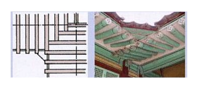 회첨에는 서까래가 모이게 됩니다.