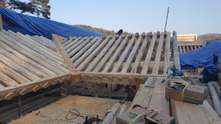 다음 공정은 선자서까래 시공인데 이틀 쉬고 일주일 선자 애벌 깎은 후 시공하러 갈 예정입니다.
