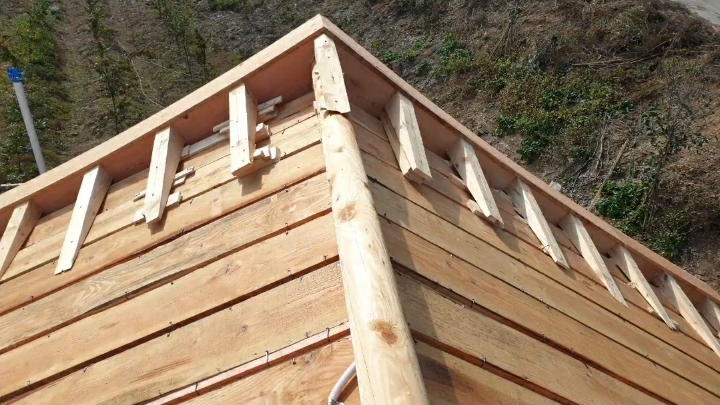 모끼연 개판 시공이 끝나면 모끼연 뒷초리와 개판 사이 뜨는 부분에 쐐기를 박아 고정합니다.