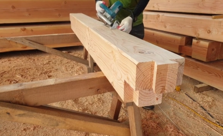 도리 모접기 전에 각진 모서리를 원형톱을 사용하여 커팅해줍니다.