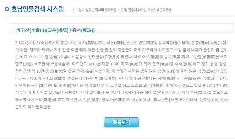 호남기록문화유산 사이트에 판서공(이귀산李貴山)에 대한 기록이 올라와 있는데 부친 의정공 휘 이원발(李元發)