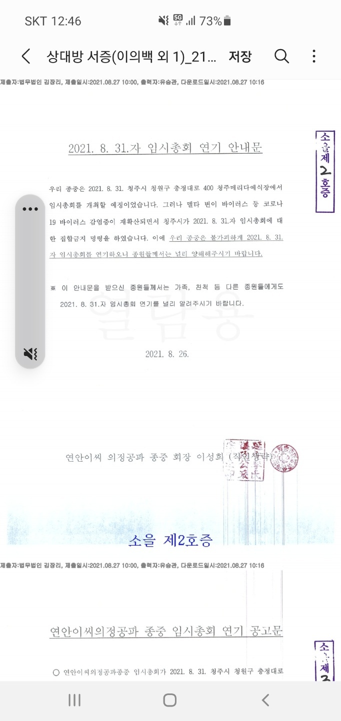 2021년 8월 31일 의정공 종중 종토 매각 임시총회가 연기 되었습니다.