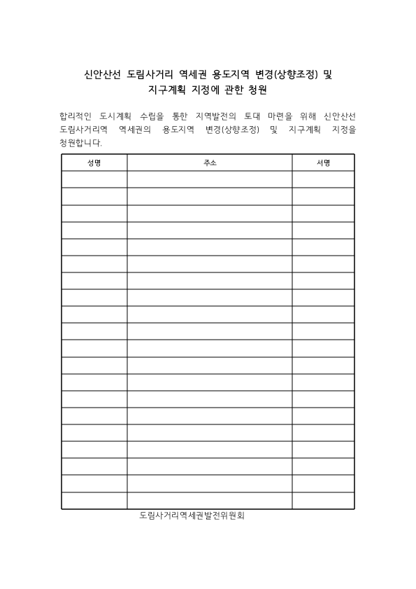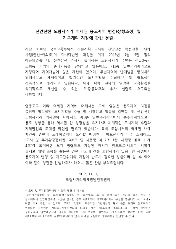 되도록이면 선거 전에 빨리 청원서를 제출하셔서 추진했으면 합니다. 수고 많으십니다. 힘내세요. 화이팅!! -