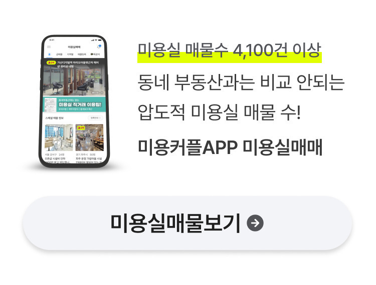 | 안녕하세요. 미용커플 카페에도 많은 매물 정보가 있지만 미용커플앱에도 많은 미용실매물 정보가 있는 거 아시죠!! 2024.10.29 미용실매물등록 수 4,153건 이상/ 1인샵 매물 2,079건 이상 이런 저런 아파트, 주택, 상가가 아닌 미용실만 모아 있으니 타켓이 정확하고 보기 쉽게 지역별로 찾을 수도 있고 #1인샵 매물도 한눈에 볼수 있어요. 이미 많은 미프린들이 직거래로 이용을 하고 계시죠~ 너무 부담스런 부동산 수수료가 0원! 어마어마하죠! 쓰지 않을 이유 없겠죠? 더 많은 정보는 미용커플앱 다운로드 후 이용해 보세요! 매물 등록은 카페와 앱 모두 이용이 가능하니 많이 올릴수록 더 많은 미용사들이 보시겠죠! 카페만 이용했다면 등업 절차 없이 가입 후 바로 이용이 가능합니다. 이용하다 미용실매매 궁금하신 정보는 카카오문의도 가능합니다.^^ 미용실매물등록 수 4,153건 이상/ 1인샵 매물 2,079건 이상 (2024.10.29 업데이트) 미용커플앱 다운로드 후 이용해 보세요.! 매물등록은 따로 등업 절차 없이 가입 후 바로 글쓰기가능!! |