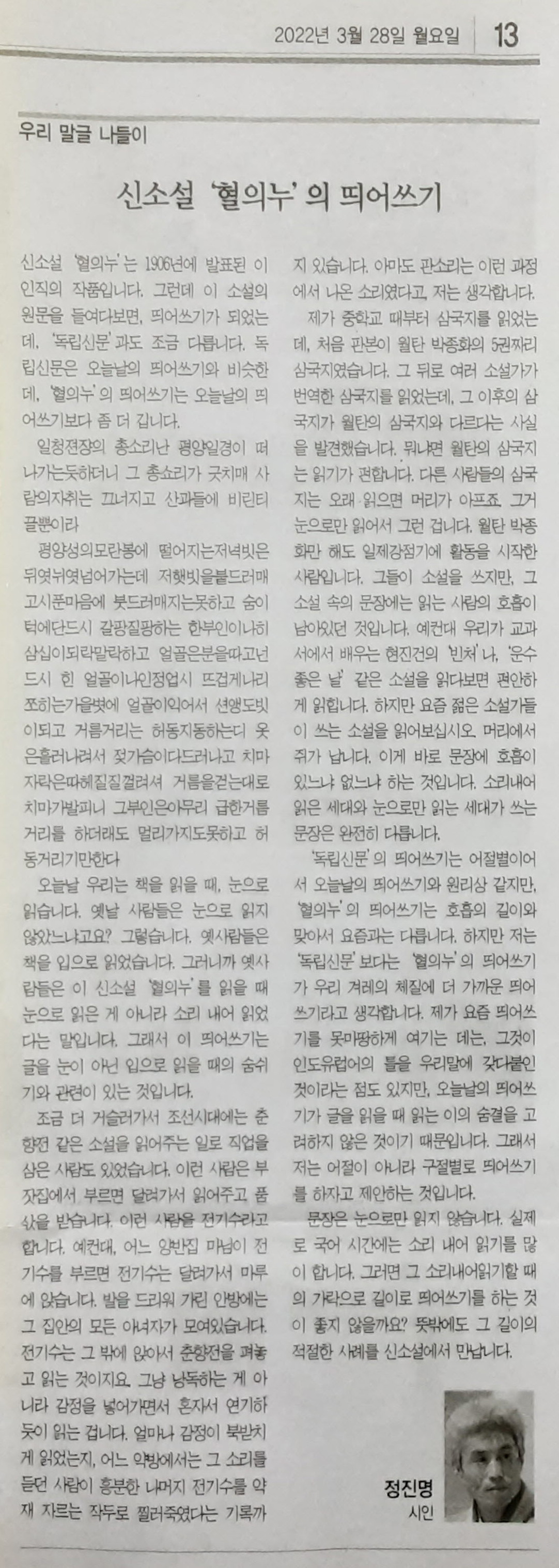 [우리 말글 나들이]신소설 ‘혈의누’의 띄어쓰기 - 충청매일 (ccdn.co.kr)