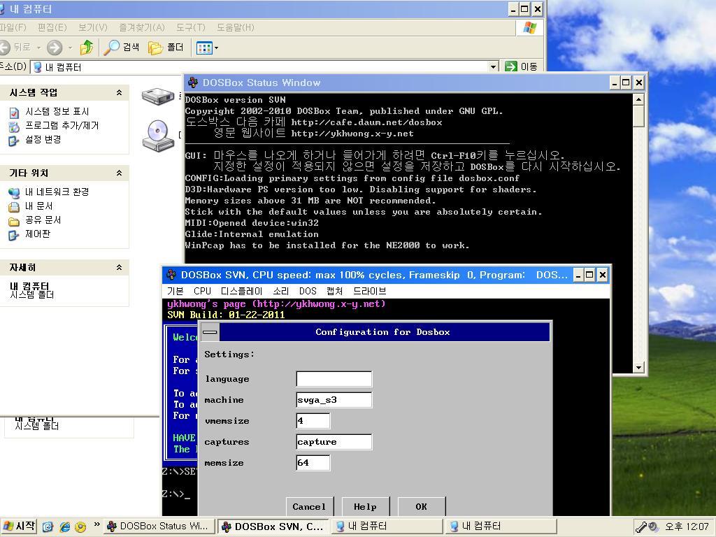 작성자DOSBox─X 작성시간 11.01.25 최신 버전의 도스박스 특별 버전을 사용하고 계신 것 같긴 한데요.. 메모리 부족 메시지가 지금 사용하고 계신 XP 운영 체제의 팝업으로 뜨나요, 아니면 Windows 설치 도중에 도스박스 안에서 뜨나요? 설명이 어려우시면 이에 따른 스크린샷을 보여 주시면 감사하겠습니다.