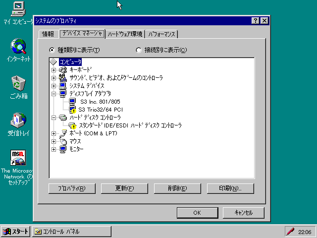 그리고 윈도우 95의 제어판의 시스템 설정에서 확인하면 하드디스크 controller탭과 디스플레이 아답터 탭의 standard IDE/ESDI하드 디스크 controller와 S3 Trio32/64 PCI에 문제가 있다고 나오는데 이 문제를 해결 할 수는 없나요?