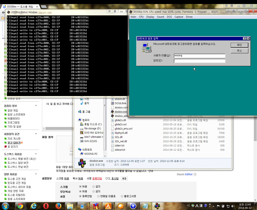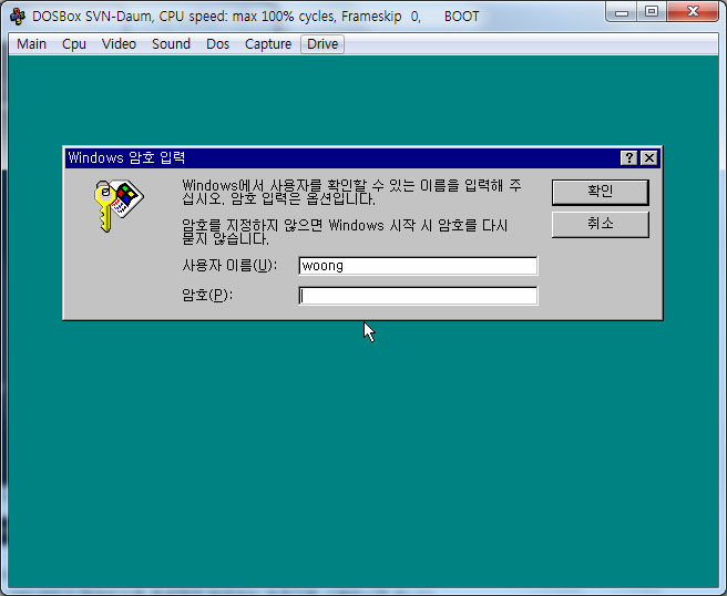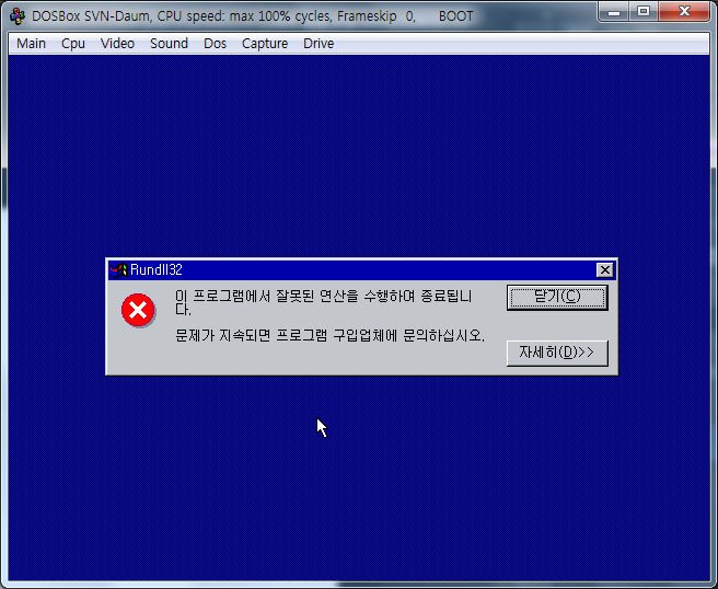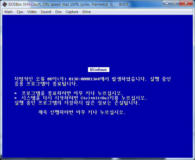 안녕하세요. 도스박스에서 윈도우를 돌려보고 싶어서 이것저것 해보는데