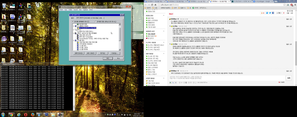 충돌 팝업이 떠있네요. 그리고 옆에 모니터에는 이 카페에서 검색했더니 제가 겪고 있는 문제와 비슷한 현상에 대해