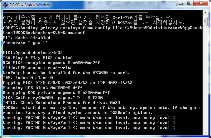 그 때 DOSBox Status Window에는