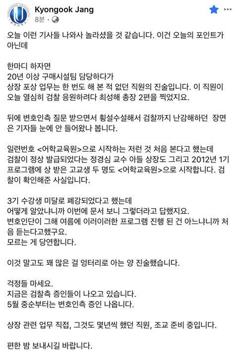 [스크랩] 장경욱 교수 페이스북 글 “정경심 교수의 재판에서 나온 발언 사실은...” 작성자거봉포도|작성시간20.03.26|조회수57 목록 댓글 0 글자크기 작게가 글자크기 크게가 . 다음검색 스크랩 원문 : 문재인공식팬카페[문팬] 현재 게시글 추가 기능 열기 북마크 공유하기 신고 센터로 신고 댓글 댓글 0 댓글쓰기 답글쓰기 댓글 리스트