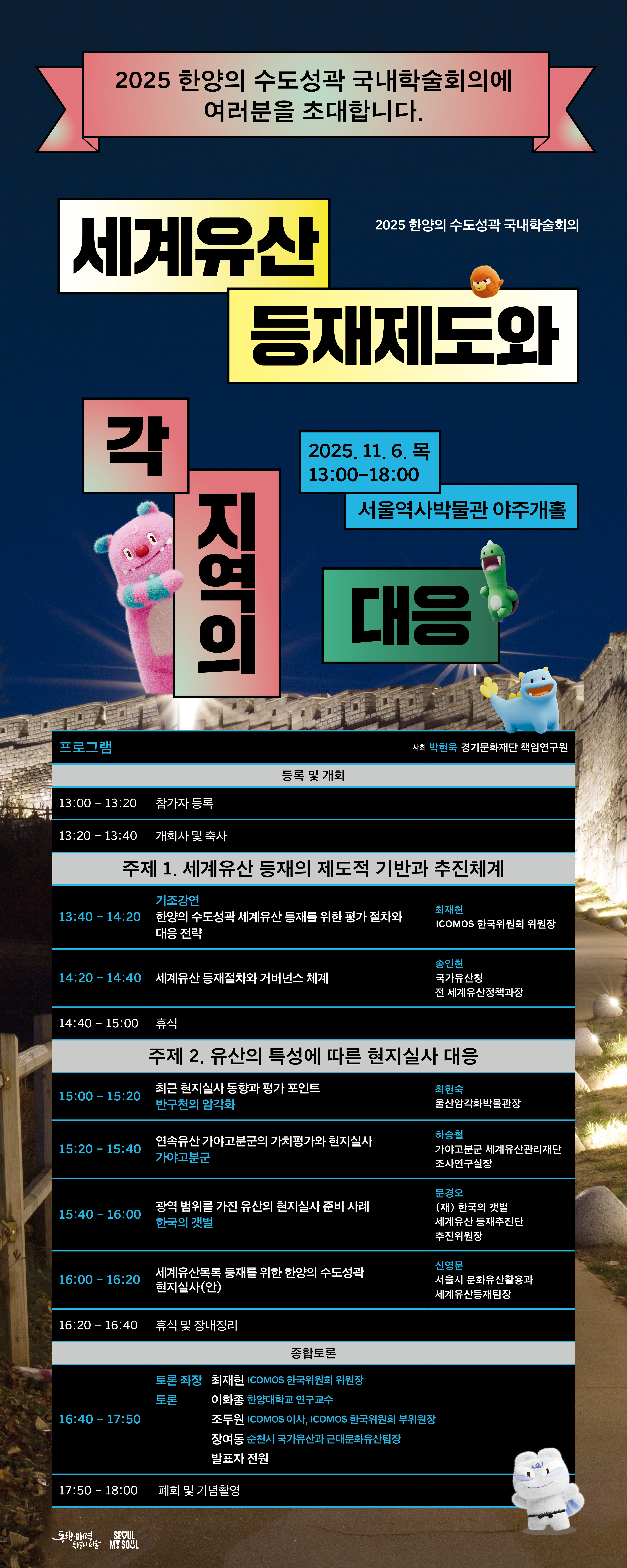 한양의 수도성곽 국내학술대회가 개최되어 참여 안내드립니다.