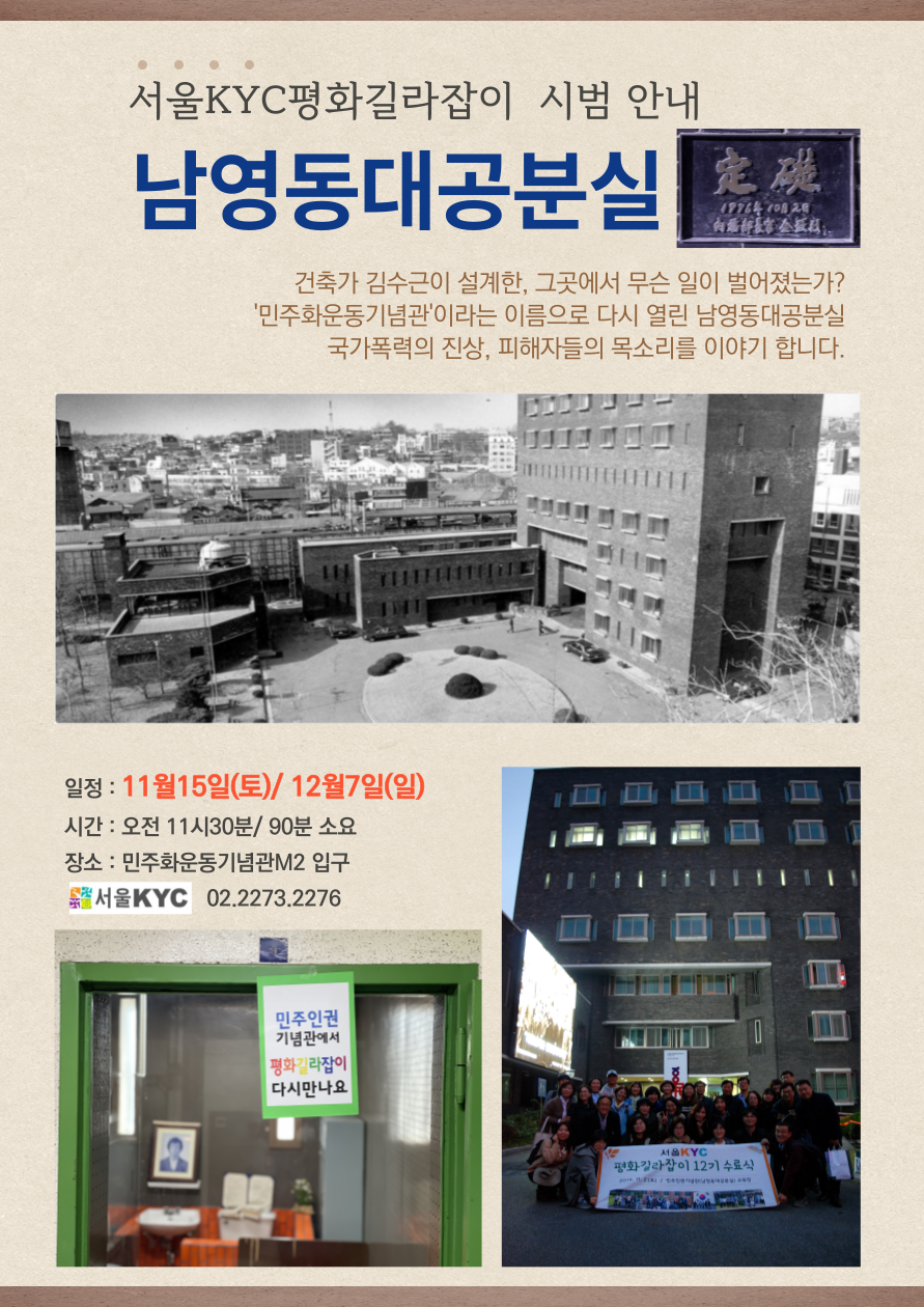 남영동대공분실 정기해설을 만들었던 서울KYC가 다시 이곳에서 독재정권과 고문, 국가폭력의 진실을 마주합니다.