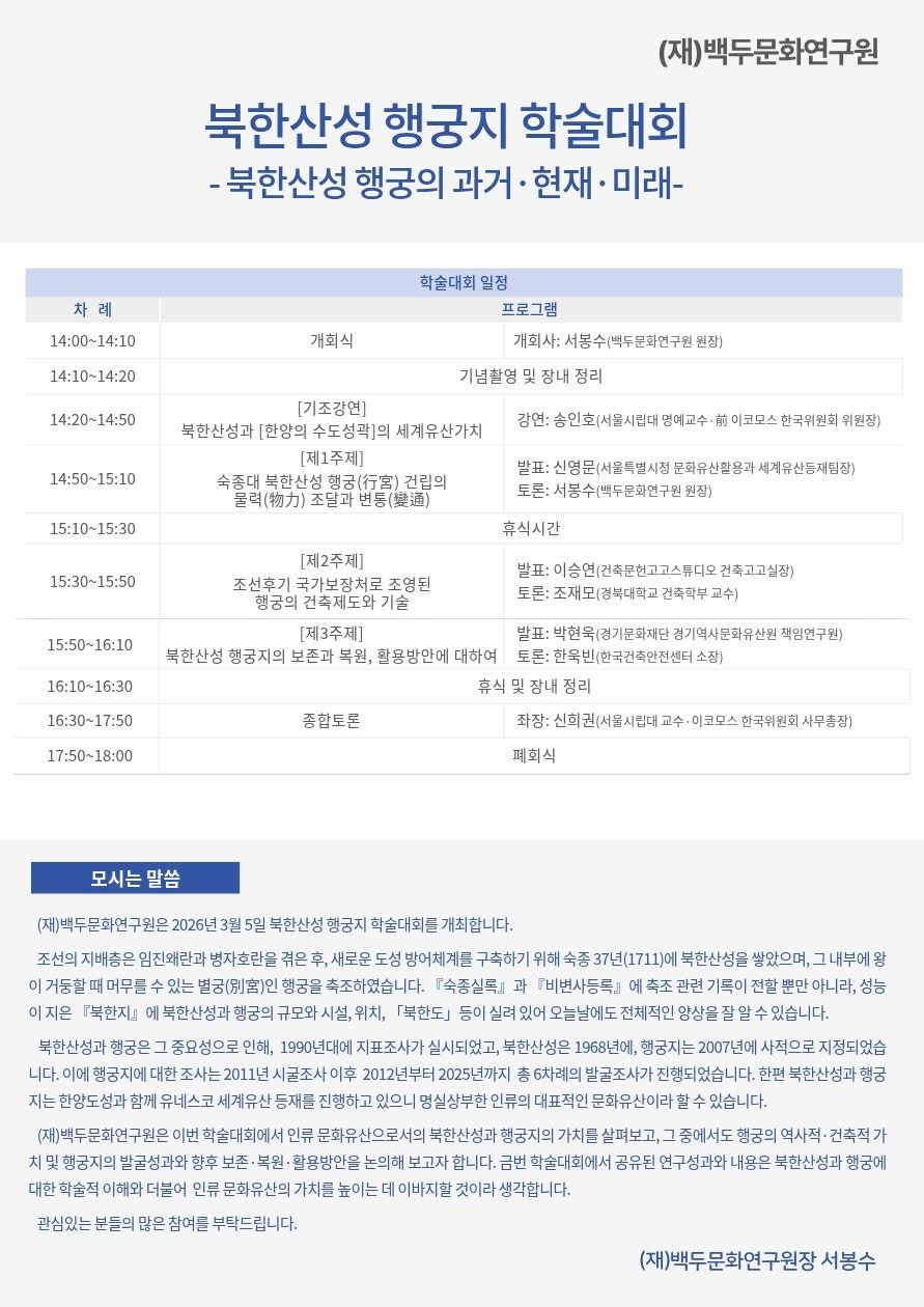 📌 북한산성 행궁의 역사와 미래를 함께 고민하는 뜻깊은 자리!