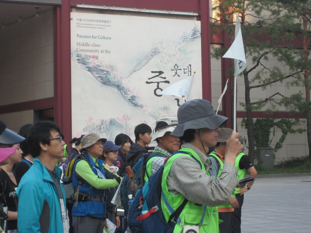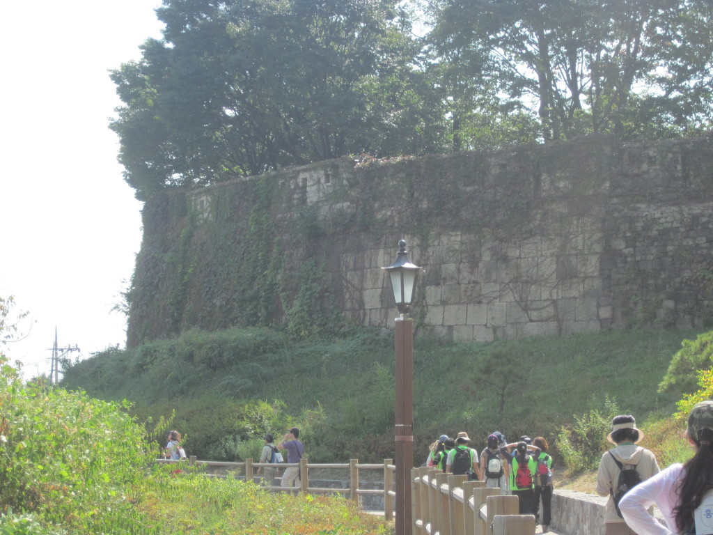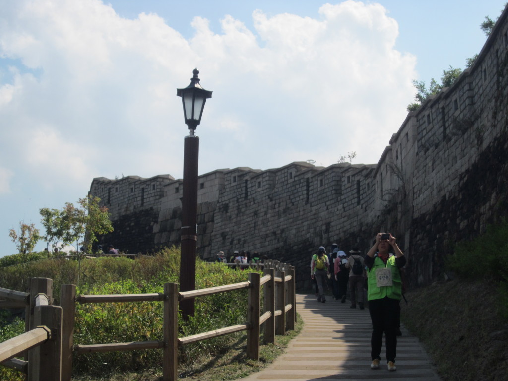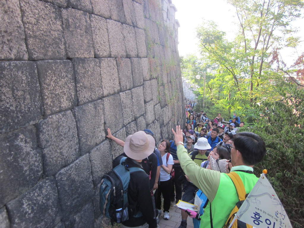 인왕산 초입부에서 시대별 성곽을 안내하는 장면