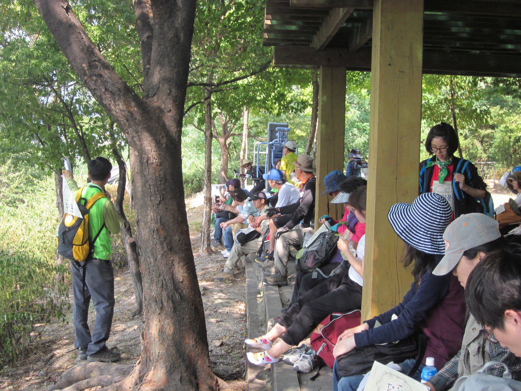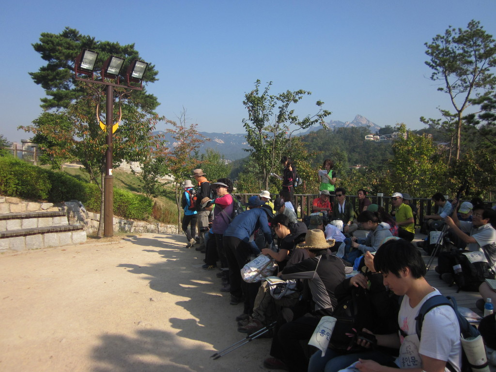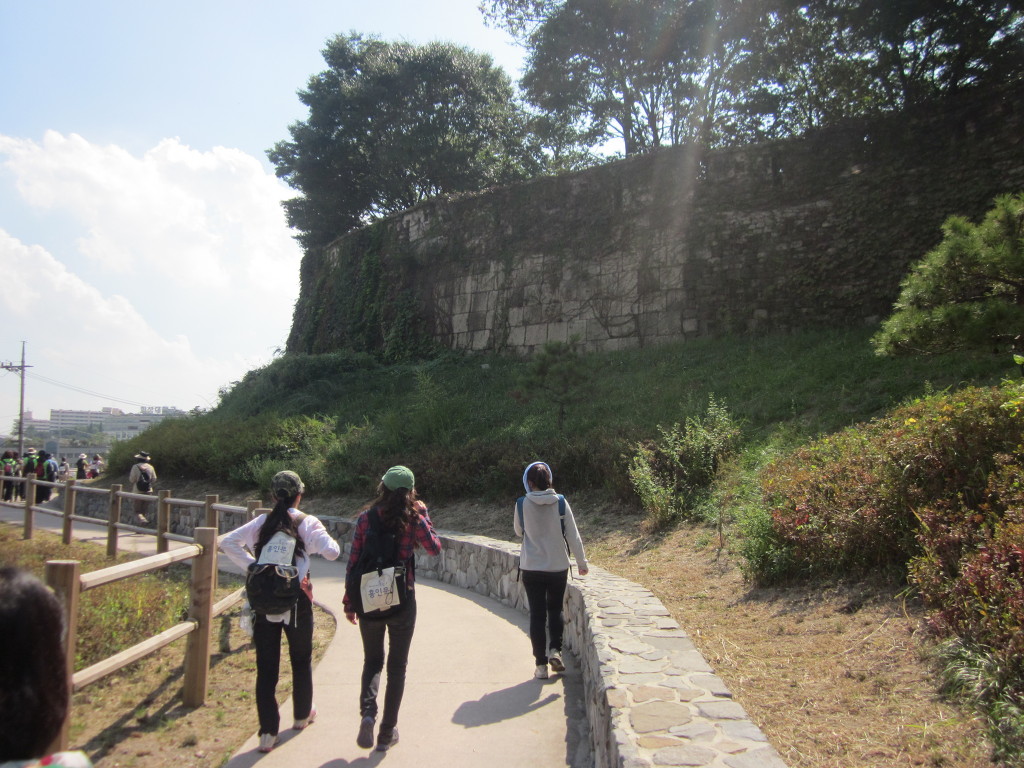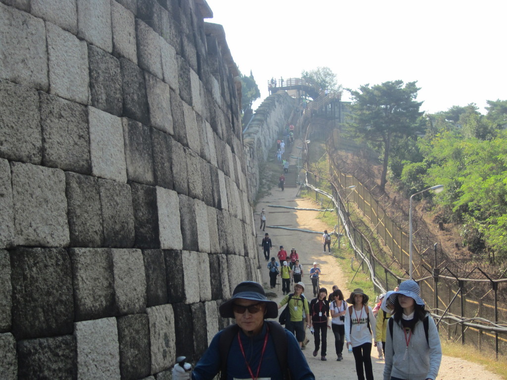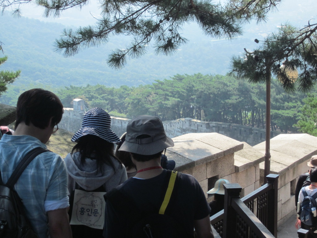 인왕산 초입부에서 시대별 성곽을 안내하는 장면