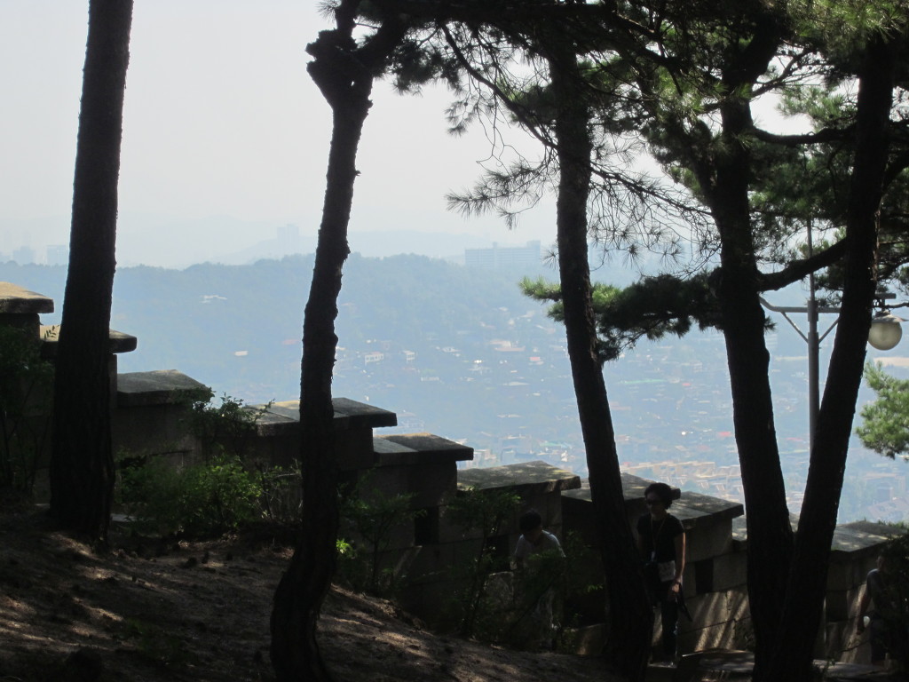 오른쪽 카톨릭대학의 울창한 나무가 성밖 사람사는 곳으로 넘쳐 흐르고 있다.