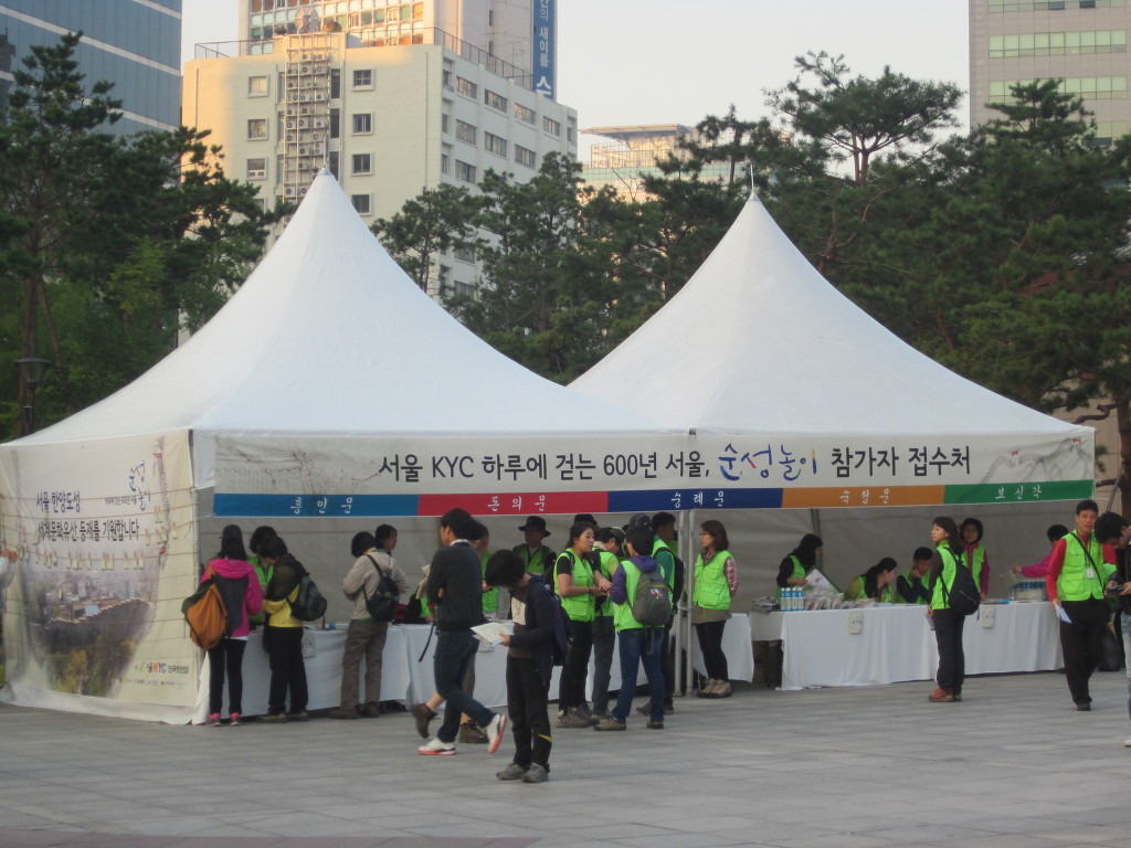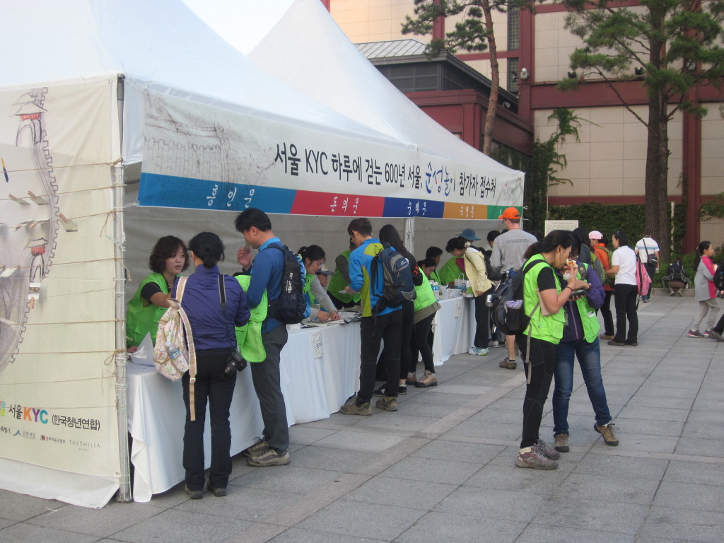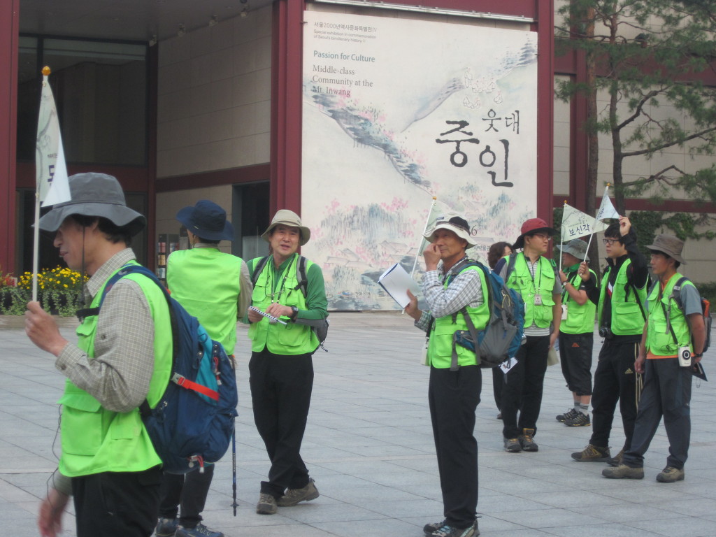 초록색 도성길라잡이 선생님들과 자원봉사자들의 준비가 분주하다.