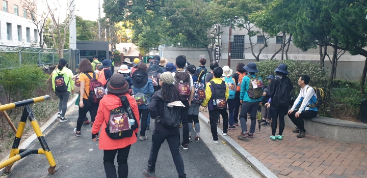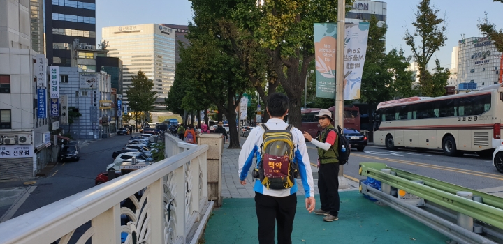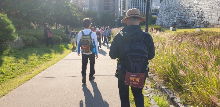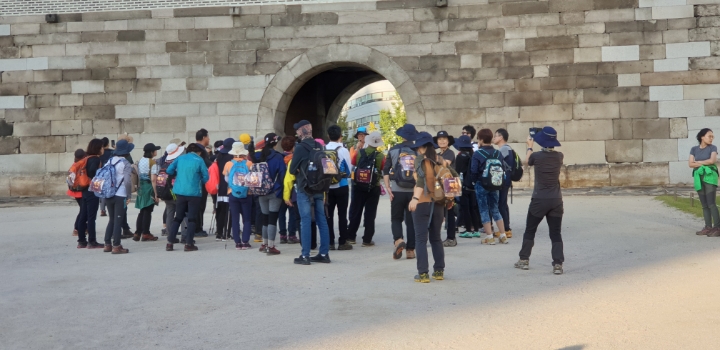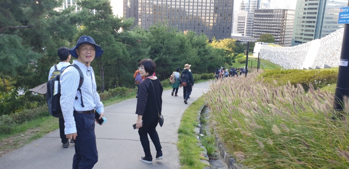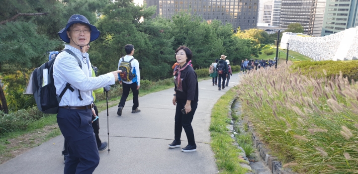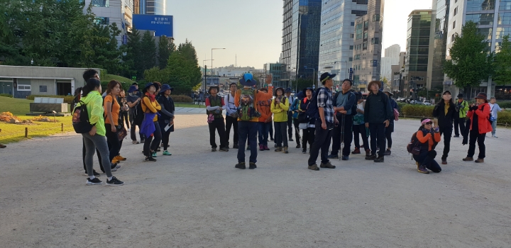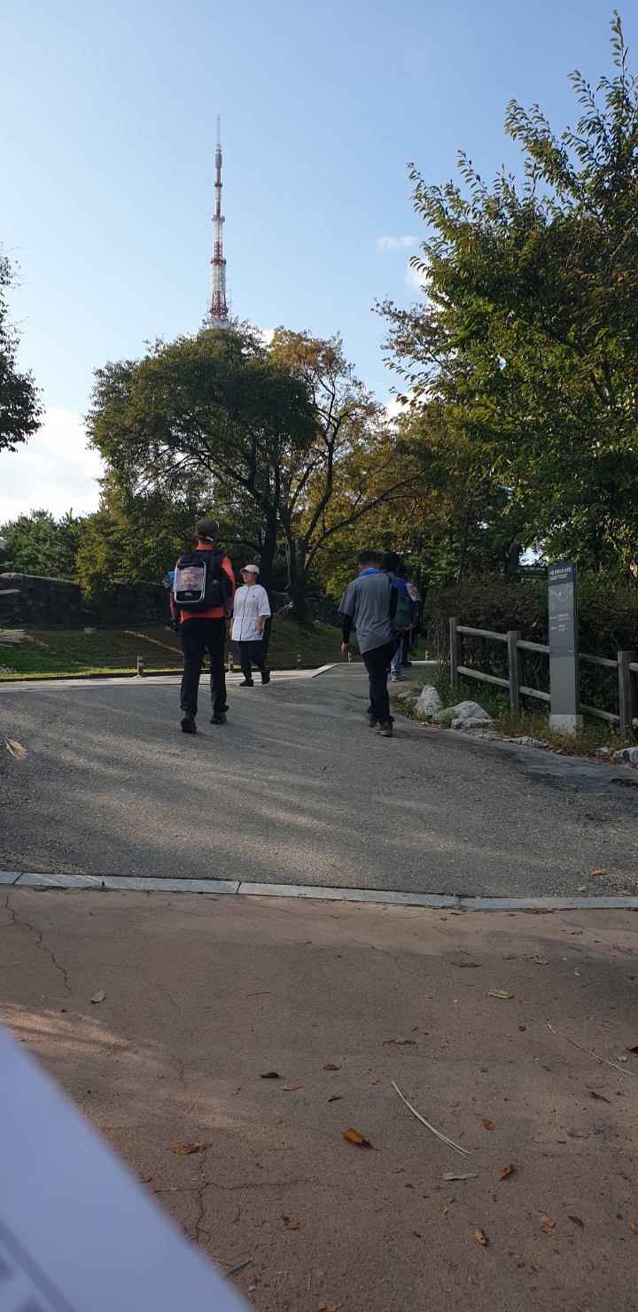 팔각정? 서울의 중심점? 버스타고 오셔서 위에서 못 만나면 전화드릴게요.하고는 남산케이블카까지 내려가서 전화를 드리는 어마한 실수를 하고 기다릴 수 없어 뒤에 다른팀이 보이시냐고 여쭤봅니다. 그리고 챙겨드리지 못했는데도 그분들을 따라 완주해주셔서 감사드립니다.
