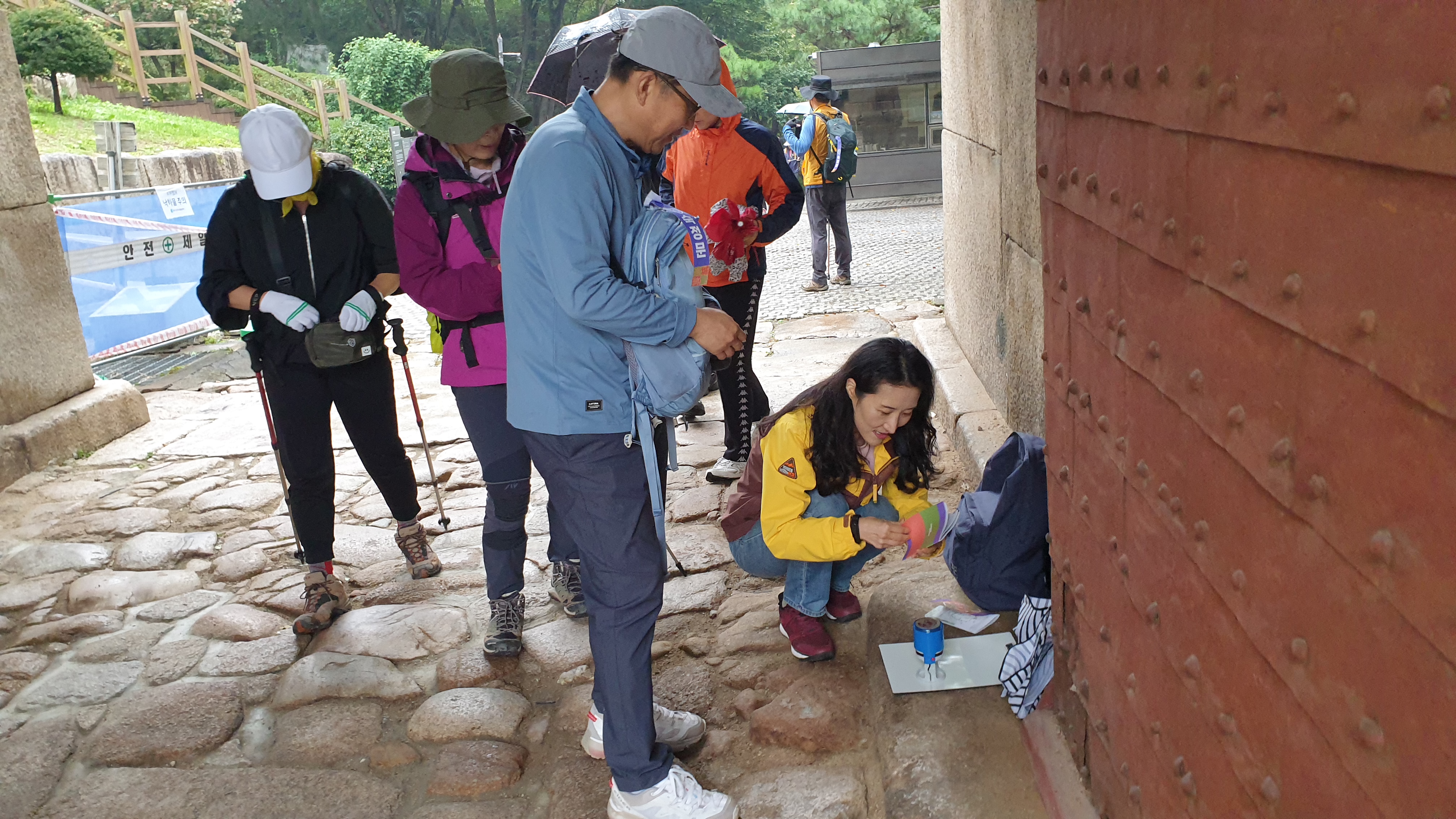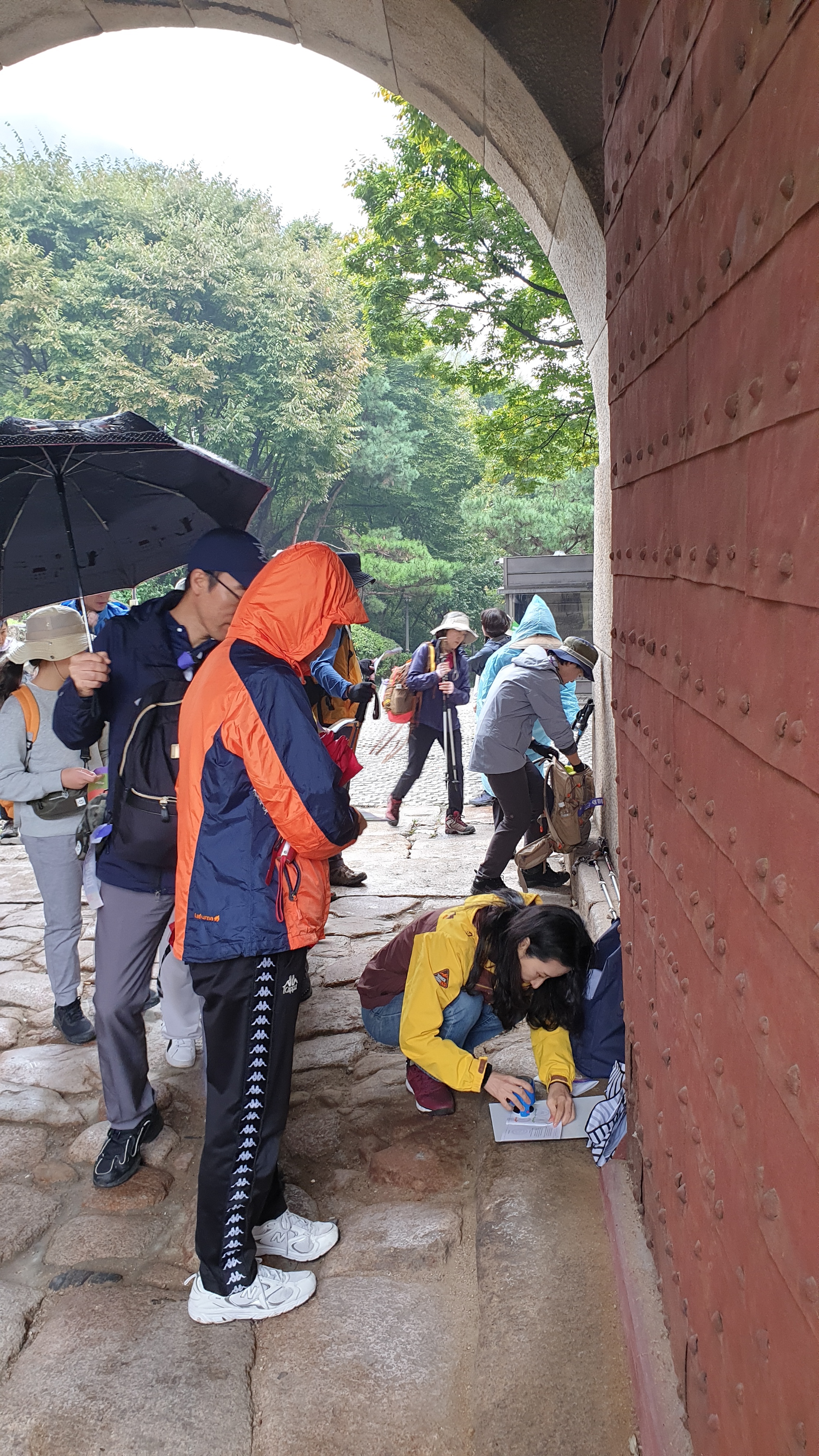 이 때부터 비가 오기 시작했습니다. 스탬프 위치를 창의문 홍예로 이동..잘 찾아오셨습니다.