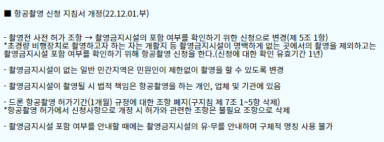 공고를 보니 초경량 비행장치로 촬영하고자 하는 자는 개활지 등 촬영금지시설이 명백하게 없는 곳에서의 촬영을