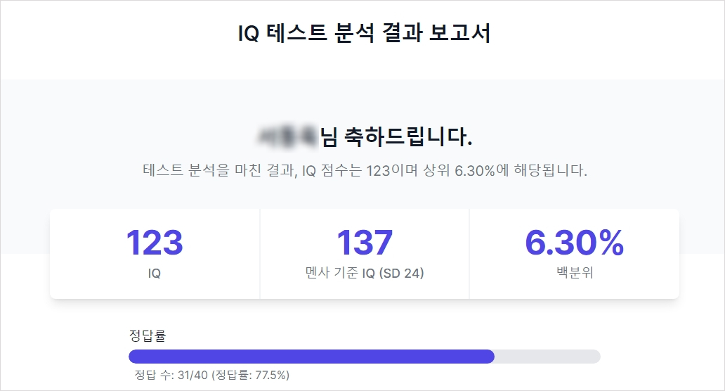 40분 푼게 아까워서 2만 3천원 결제했는데 아이큐 123 나왔음