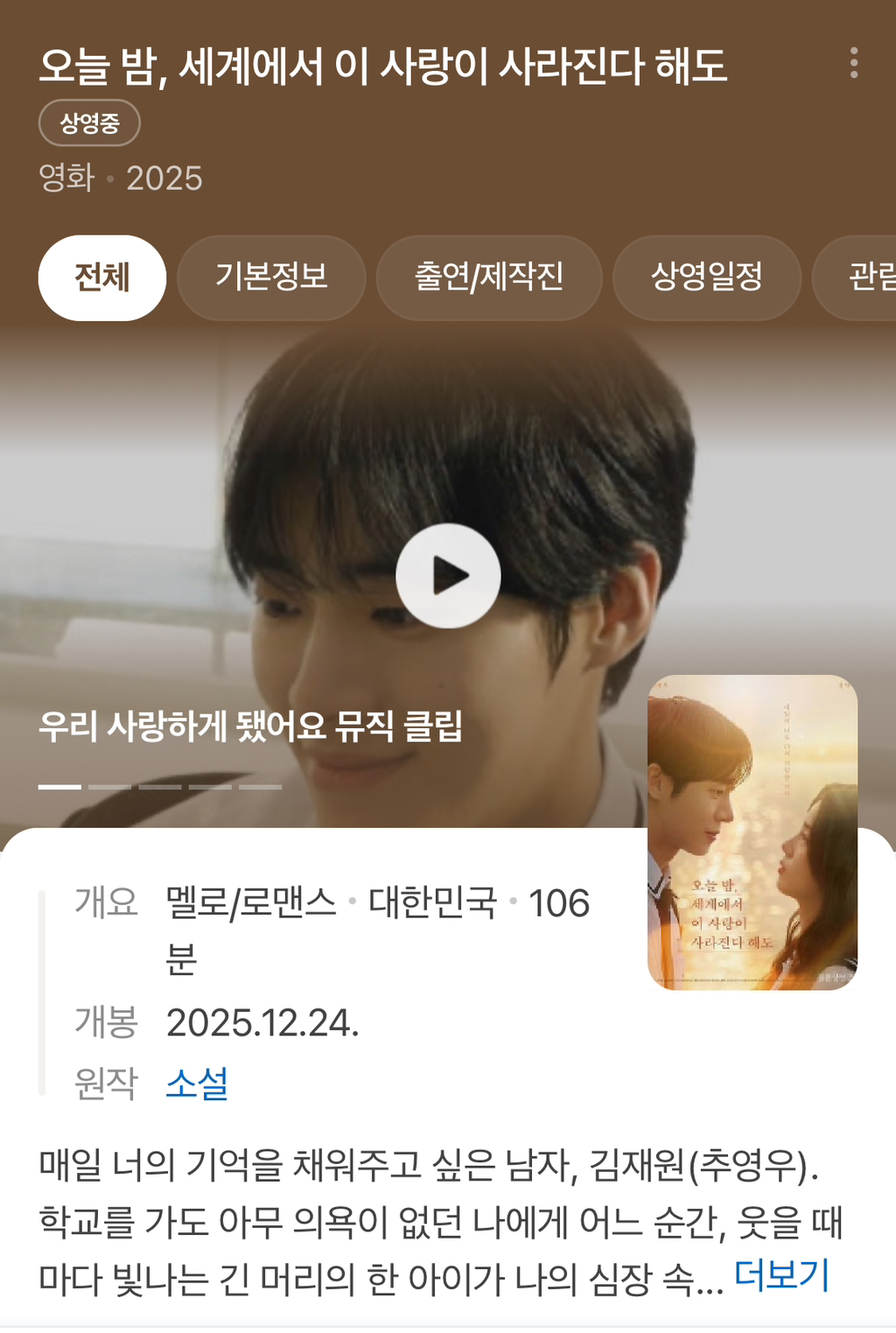 영화 보고 왔습니당... 작성자@ㄱI성용|작성시간25.12.31|조회수298 목록 댓글 13 글자크기 작게가 글자크기 크게가 엉엉 울었습니다ㅜㅜㅜㅜ 다음검색 현재 게시글 추가 기능 열기 북마크 공유하기 신고 센터로 신고 댓글 댓글 13 댓글쓰기 답글쓰기 댓글 리스트 답댓글 작성자@ㄱI성용 작성자 본인 여부 작성자 | 작성시간 25.12.31 낭만ㅠㅠ 작성자우정잉 | 작성시간 25.12.31 작성자검찰총장 | 작성시간 25.12.31 일본원작도 보셨나요? 감정선 건드리는 건 일본판이 더 우위였는데, 배우들 비쥬얼은 한국판이 압도적이더라구요 ㅋㅋㅋ 답댓글 작성자@ㄱI성용 작성자 본인 여부 작성자 | 작성시간 25.12.31 원작도 보려구여 작성자달리삼촌팬 | 작성시간 25.12.31 이미지 확대 댓글 전체보기
