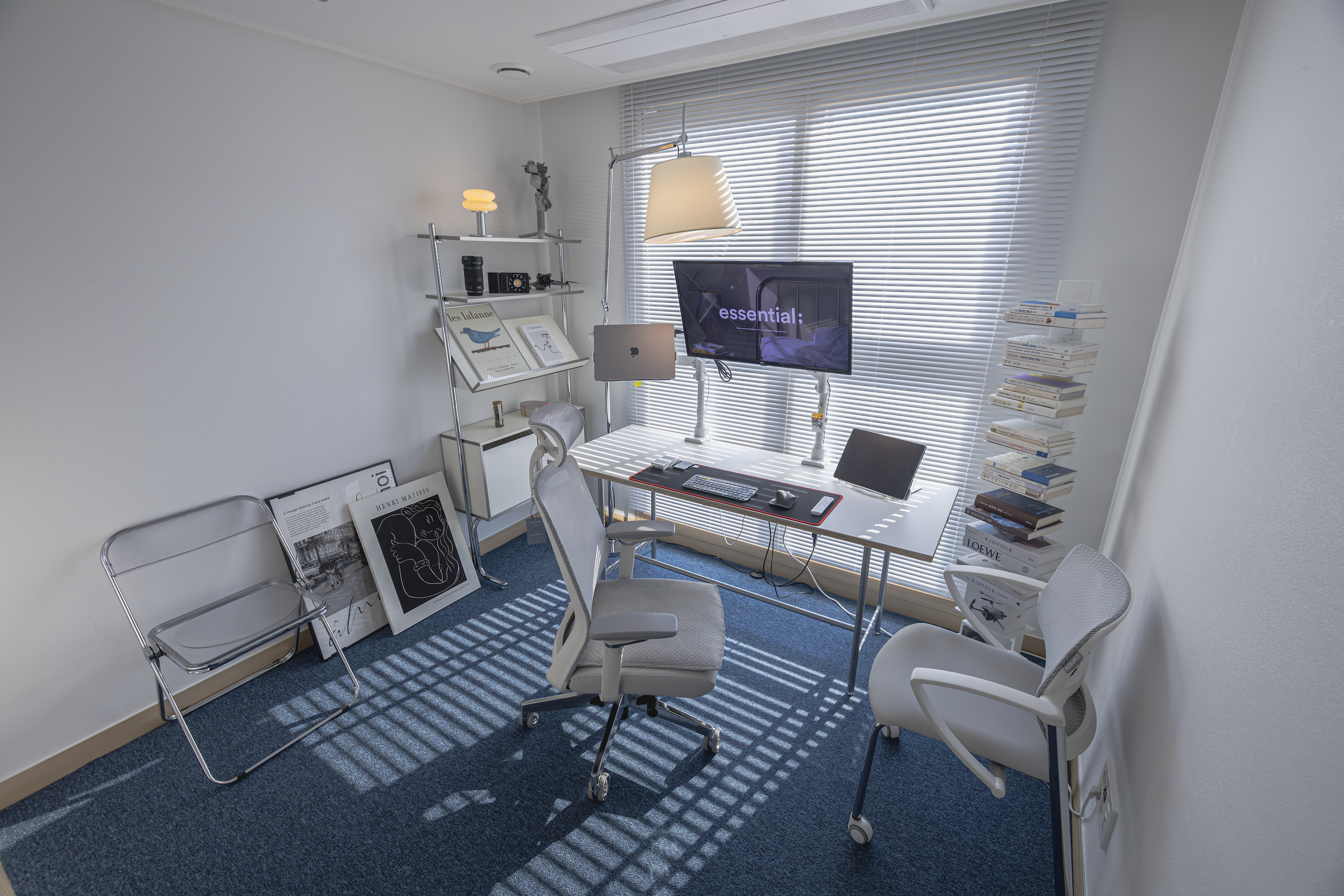 게이밍용 + 사무용 의자 확실히 카펫까니까 뒤로 안밀리고 편하네요.