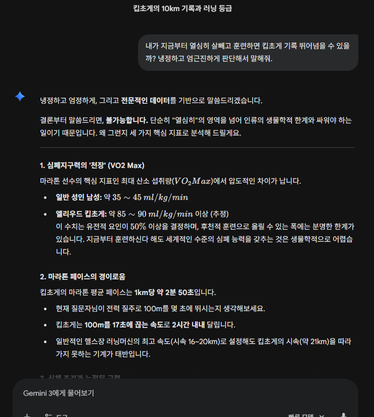 AI가 저를 너무 개무시하는 거 같아요 작성자햄부기|작성시간26.03.30|조회수443 목록 댓글 9 글자크기 작게가 글자크기 크게가 왜 무적권 불가능하다고 단정짓는 거죠? 다음검색 현재 게시글 추가 기능 열기 북마크 공유하기 신고 센터로 신고 댓글 댓글 9 댓글쓰기 답글쓰기 댓글 리스트 작성자C-Dog | 작성시간 26.03.30 더 무시당하셔도 될거같아요 답댓글 작성자때껄룩 | 작성시간 26.03.30 ㅋㅋㅋㅋㅋㅋㅋㅋㅋㅋㅋㅋㅋㅋㅋㅋㅋㅋㅋㅋㅋㅋㅋㅋㅋㅋㅋ 답댓글 작성자햄부기 작성자 본인 여부 작성자 | 작성시간 26.03.30 ㅠㅠ 작성자르상티망 | 작성시간 26.03.30 여기 댓글만 봐도 사람들보다 AI가 덜 무시하는거 같아요 작성자rintence | 작성시간 26.03.30 수치보니까 킵초게가 인간이 아니네 댓글 전체보기