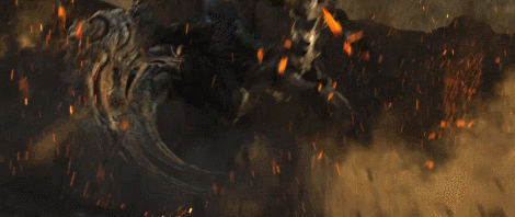 시네마틱 영상 중 공성모드의 시즈탱크를 칼질 한방으로 잘라버리는 울트라리스크